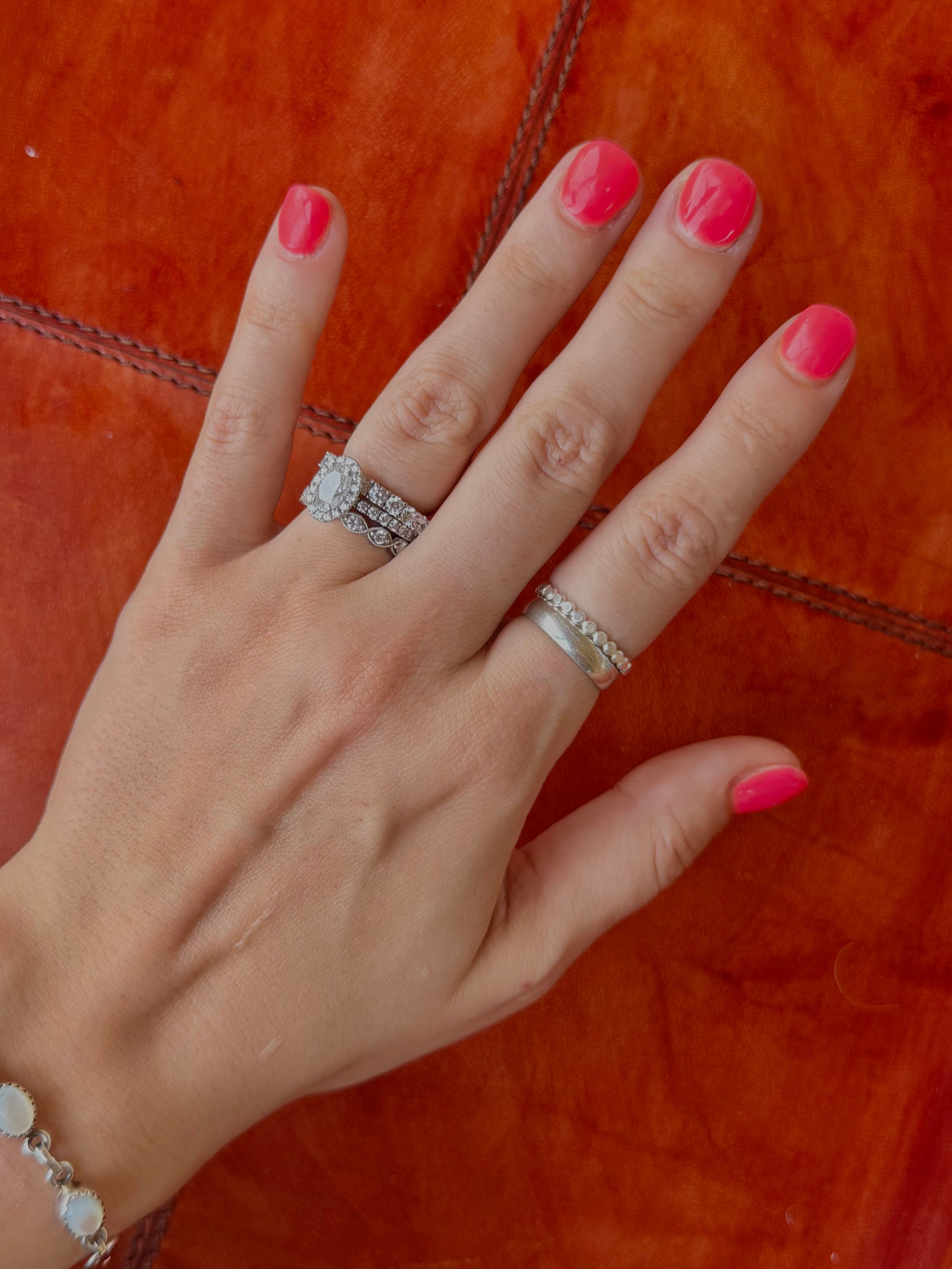 Beautiful ring and a true staple piece as it matches with everything being all silver.