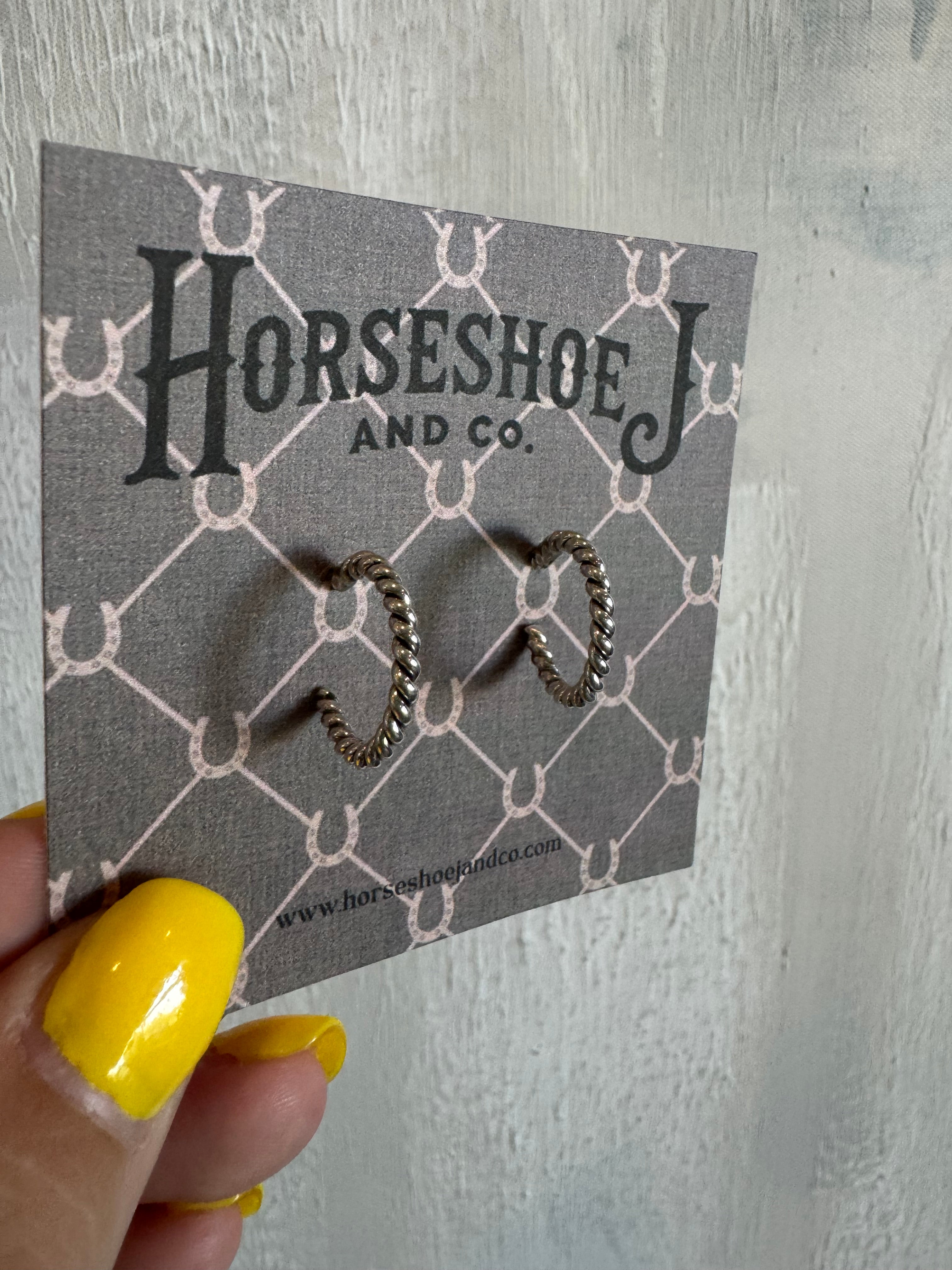 Native-made sterling silver hoop earrings handcrafted by a skilled artisan. Classic .925 silver hoops with traditional craftsmanship and an everyday Western style.