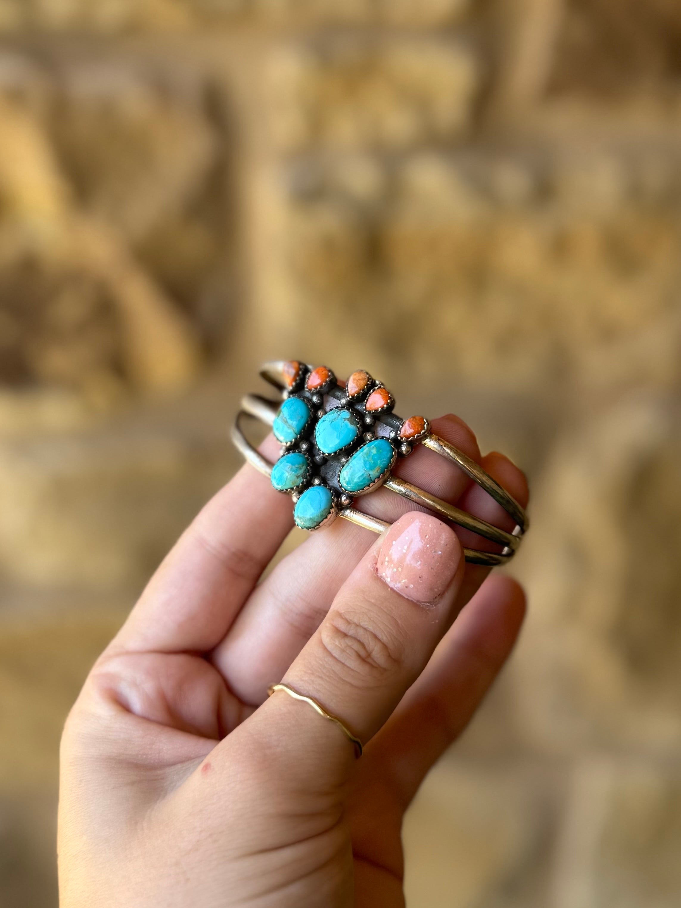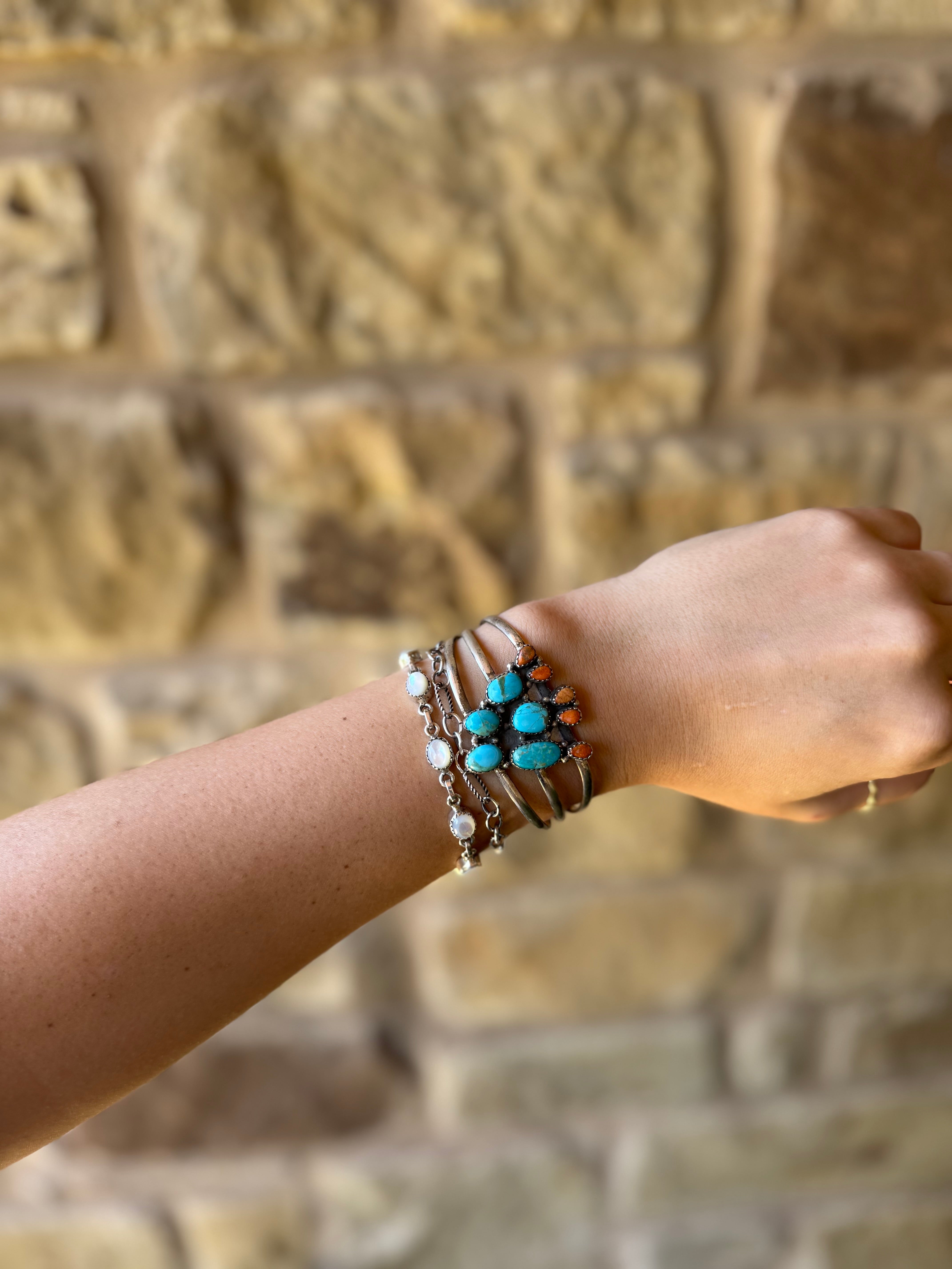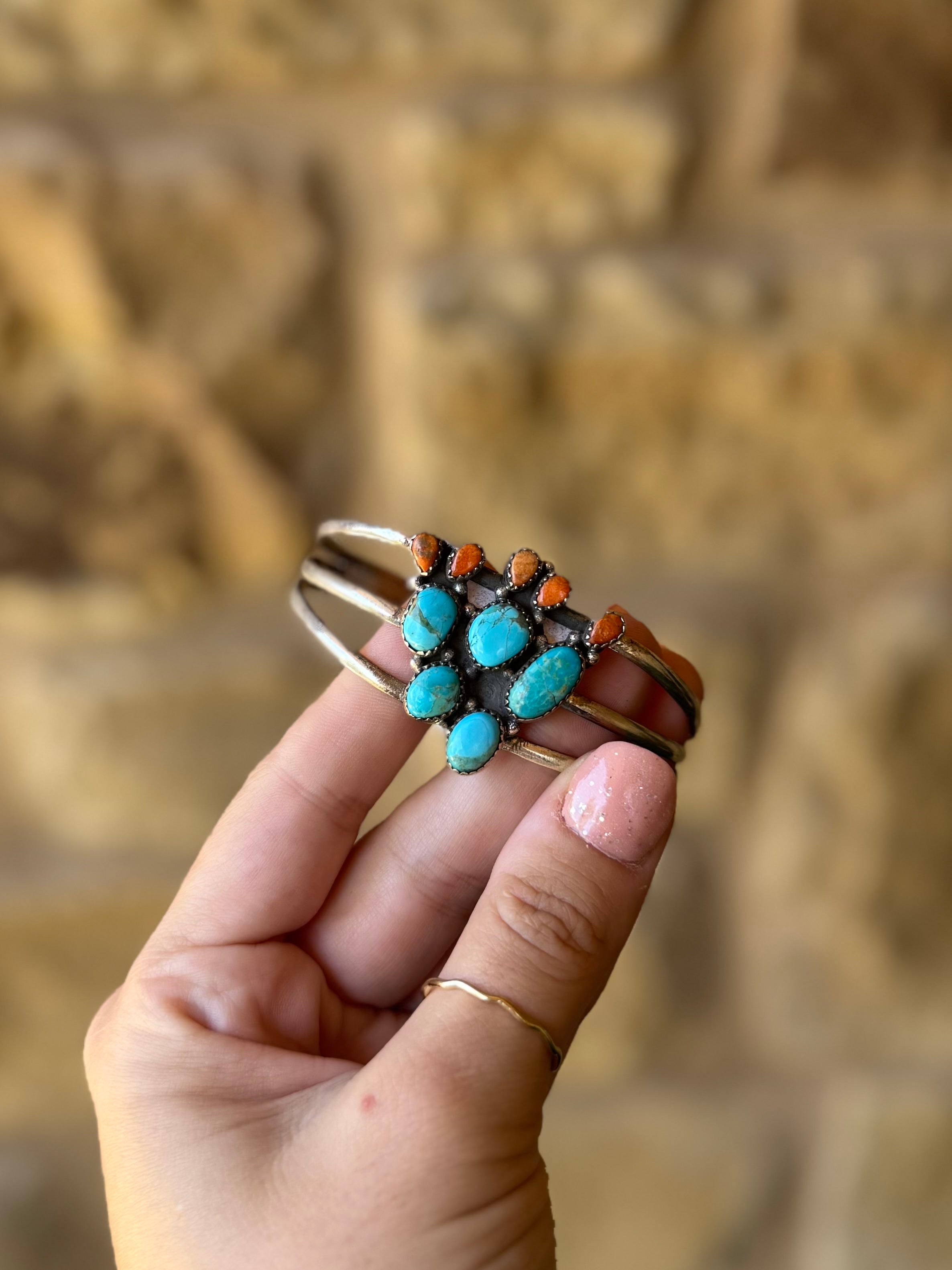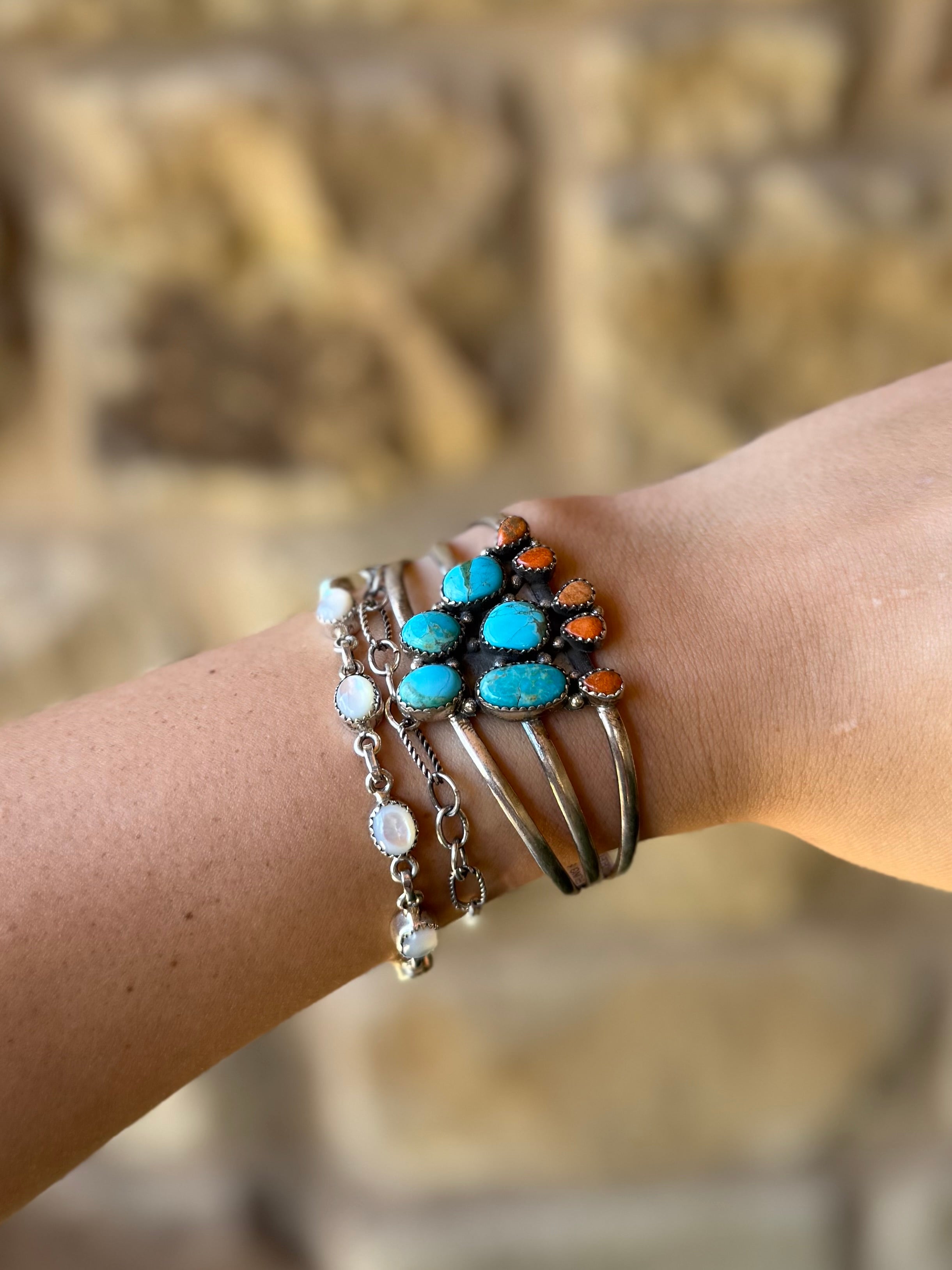 Alvord Turquoise + Apple Coral Cactus Cuff Bracelet – Horseshoe J & Co.