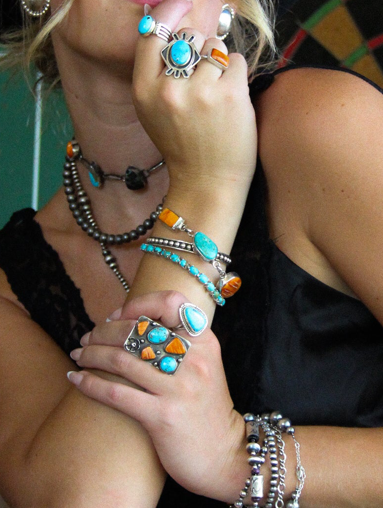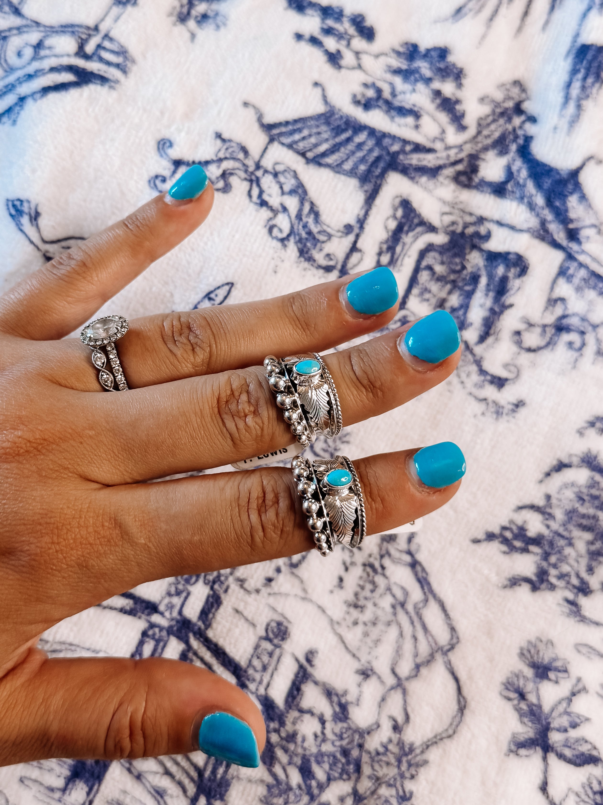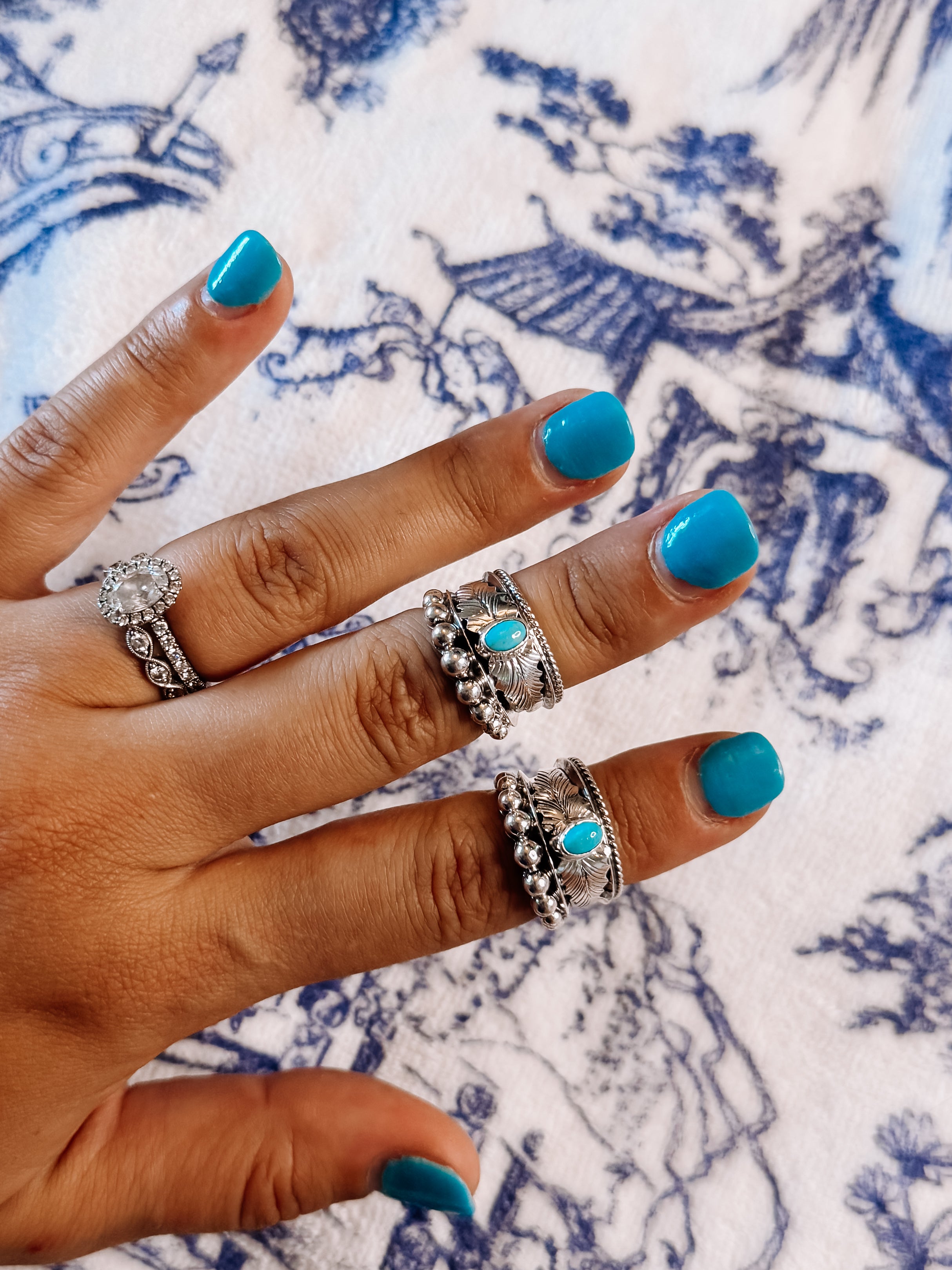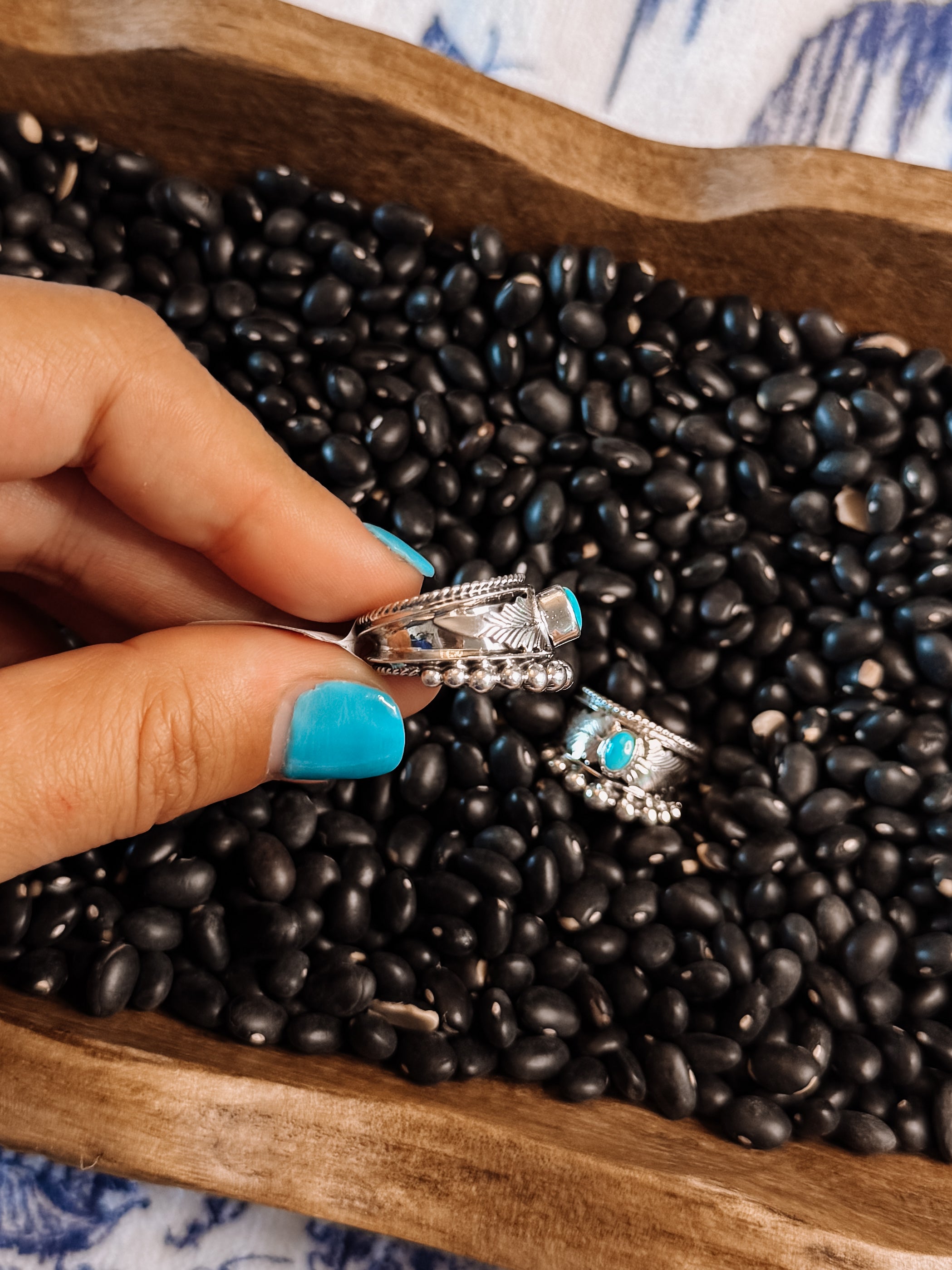 Eureka White Buffalo + Turquoise Adjustable Rings