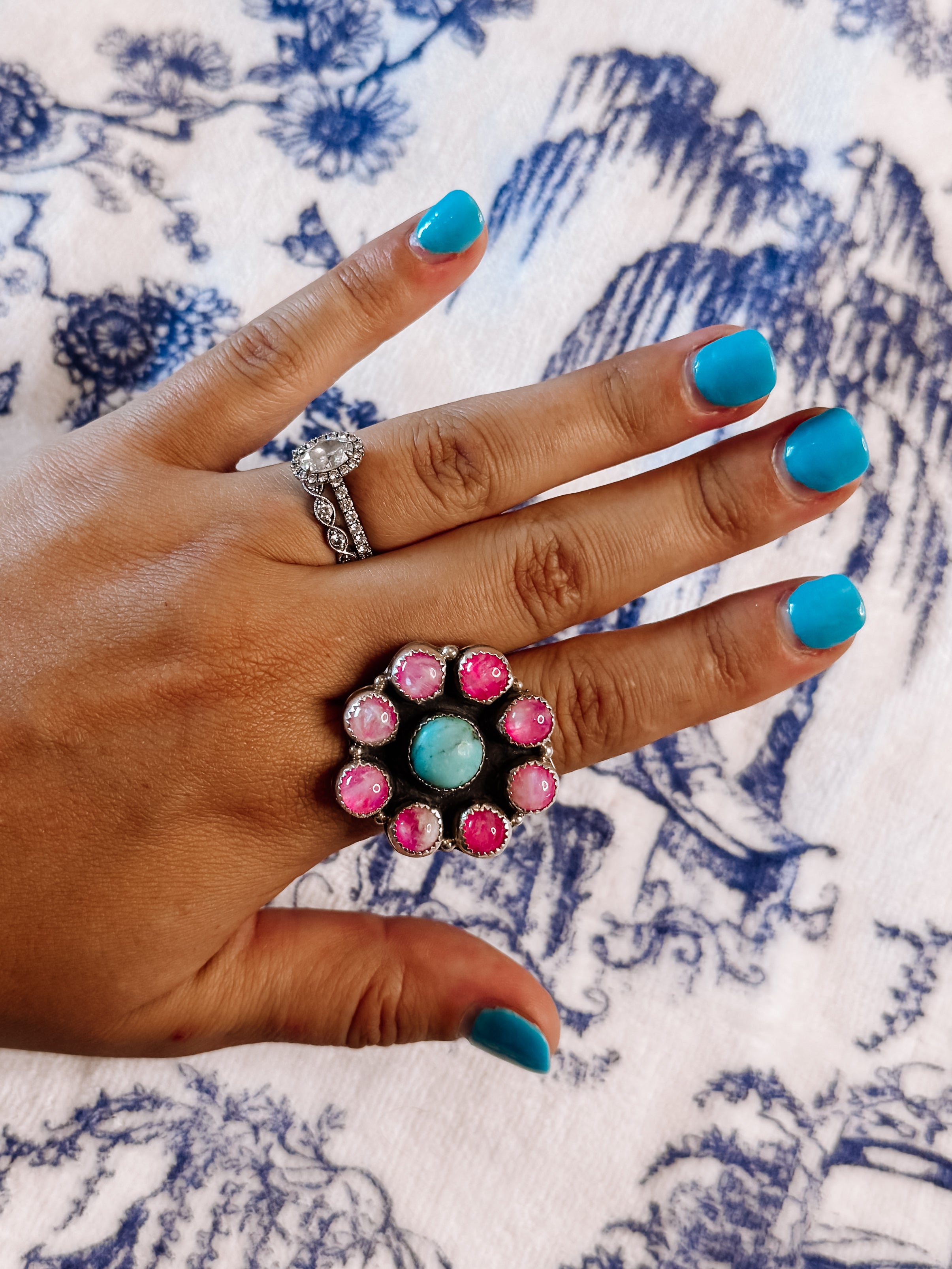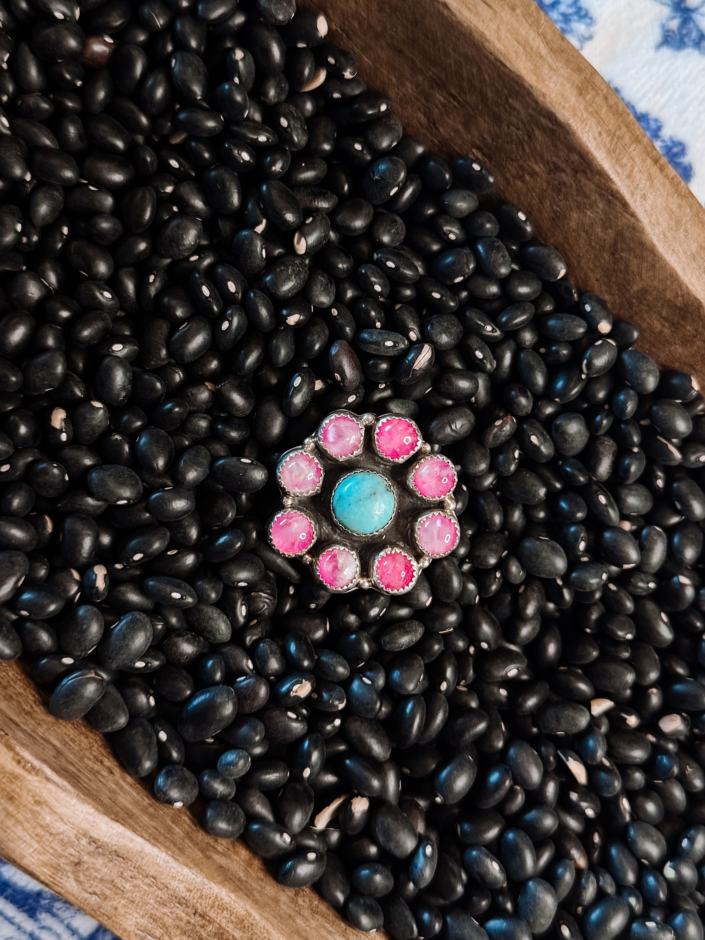Forney Pink Moonstone + Turquoise Cluster Ring
