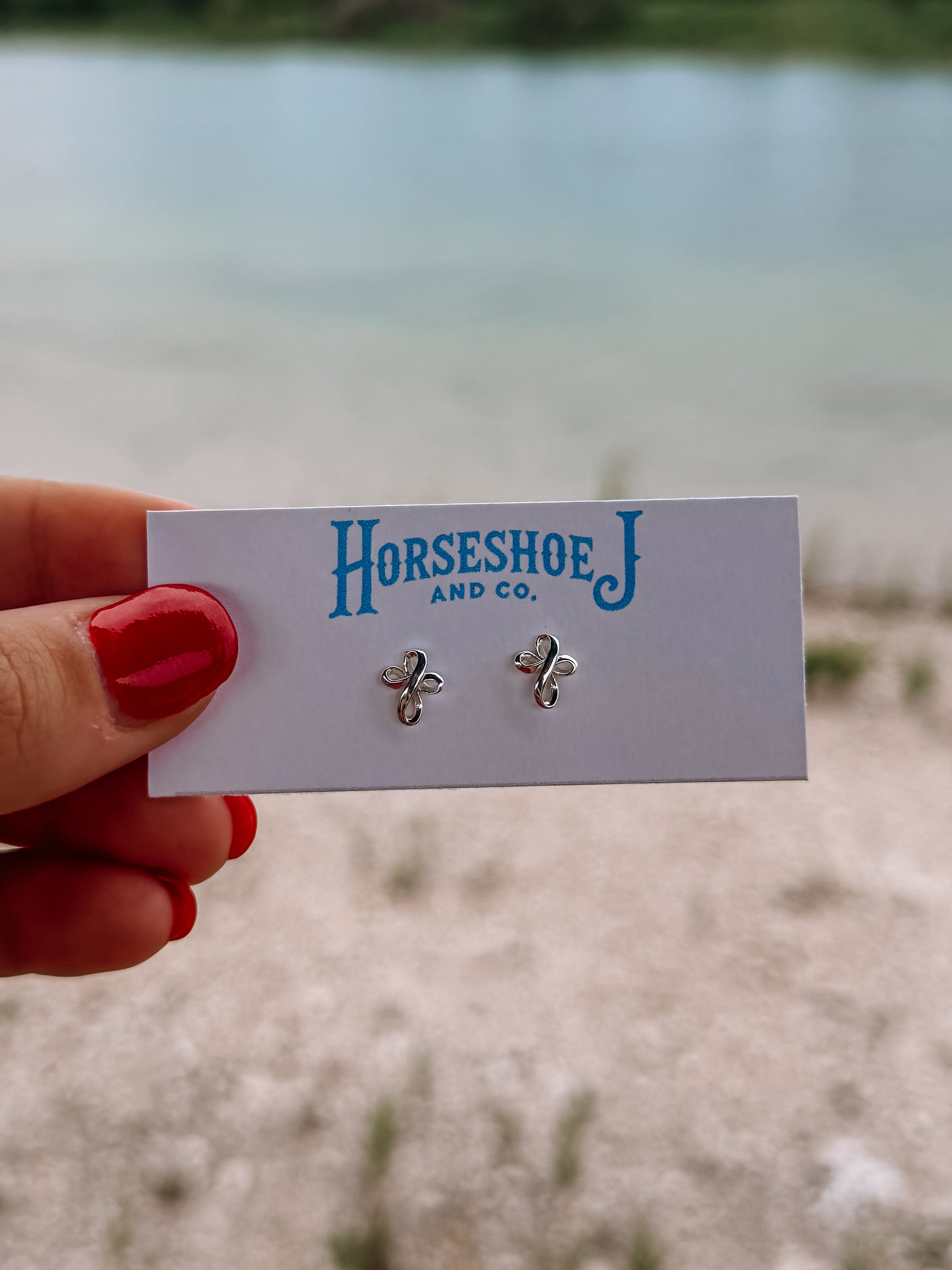 9mm Ribbon Cross Stud Earrings