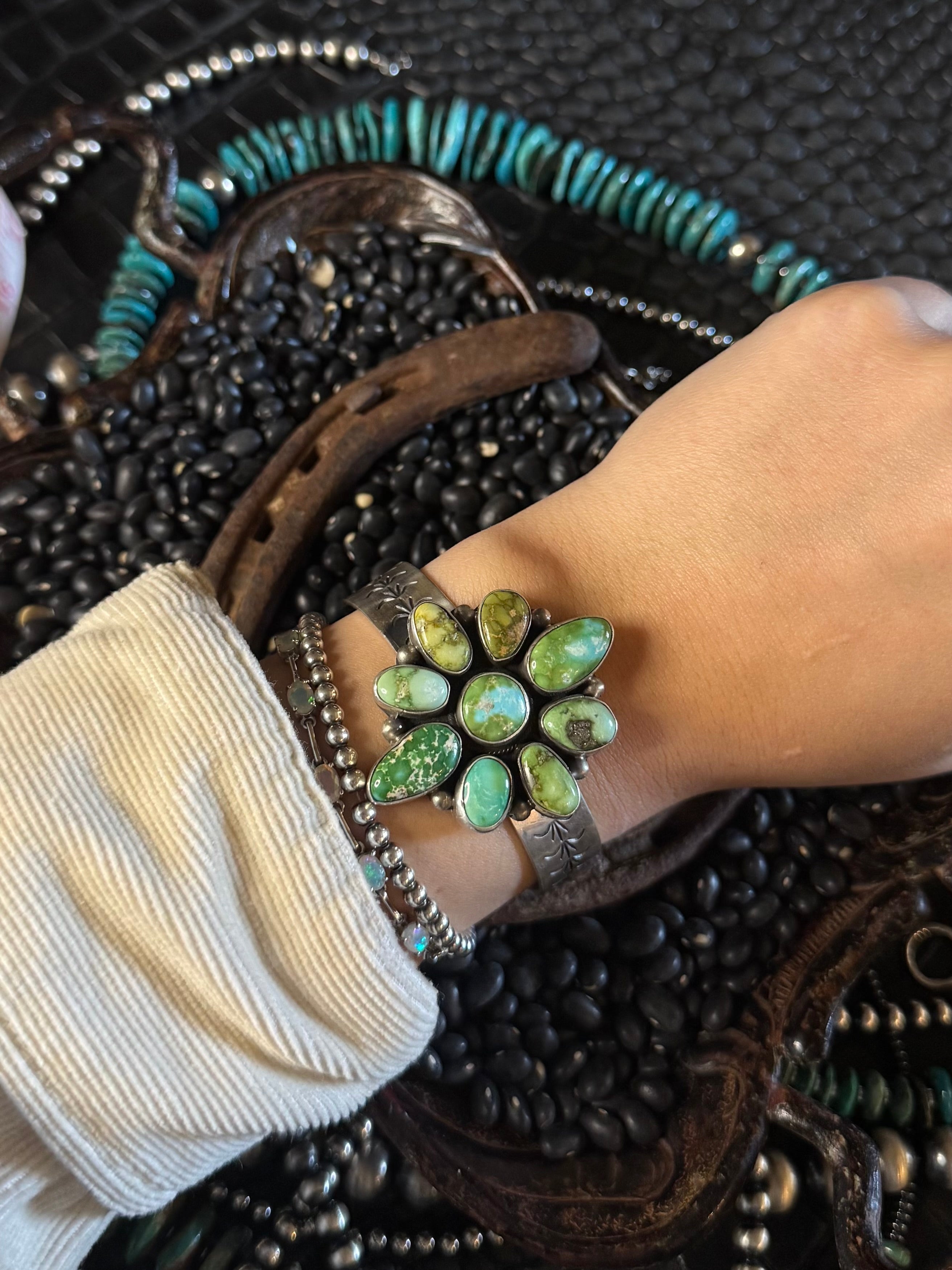 Rainy Day Blues Pearl + Turquoise Cuff Bracelet