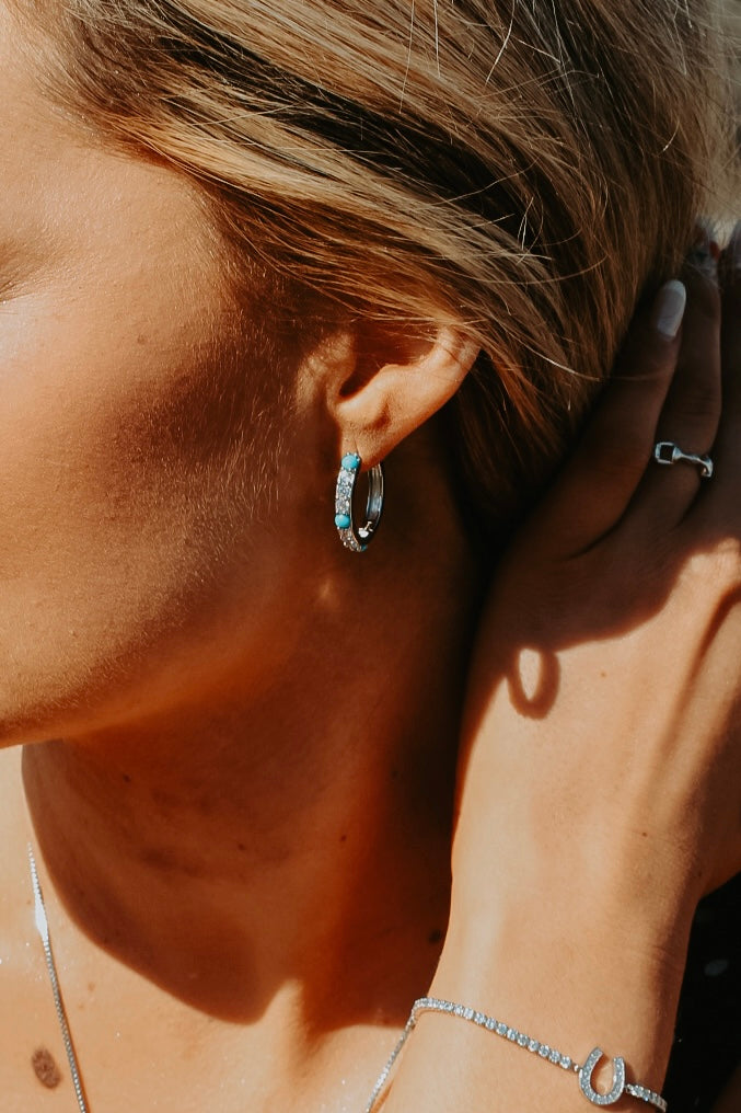 Cowgirl Luxe Sleeping Beauty & Clear CZ Hoop Earrings