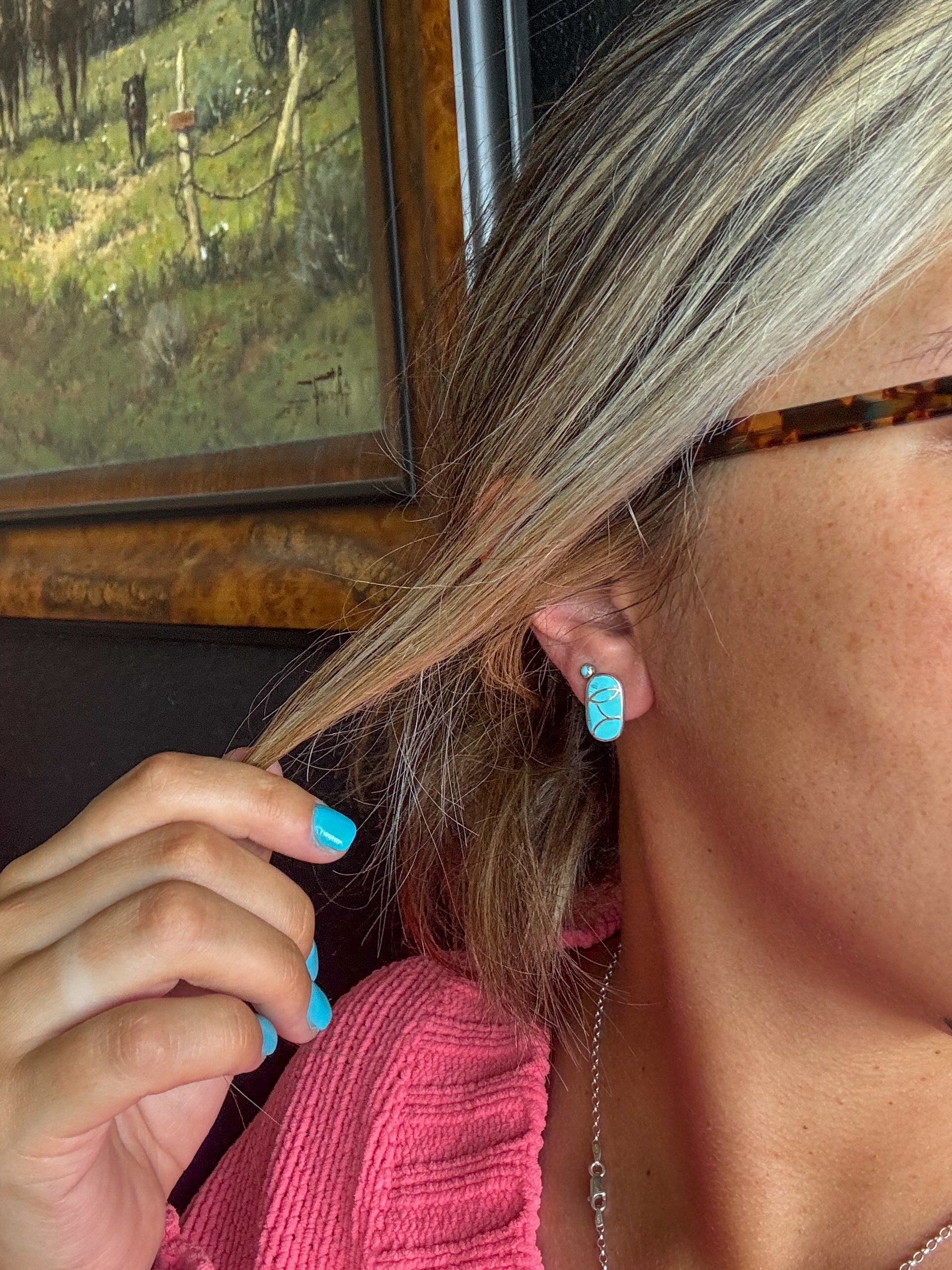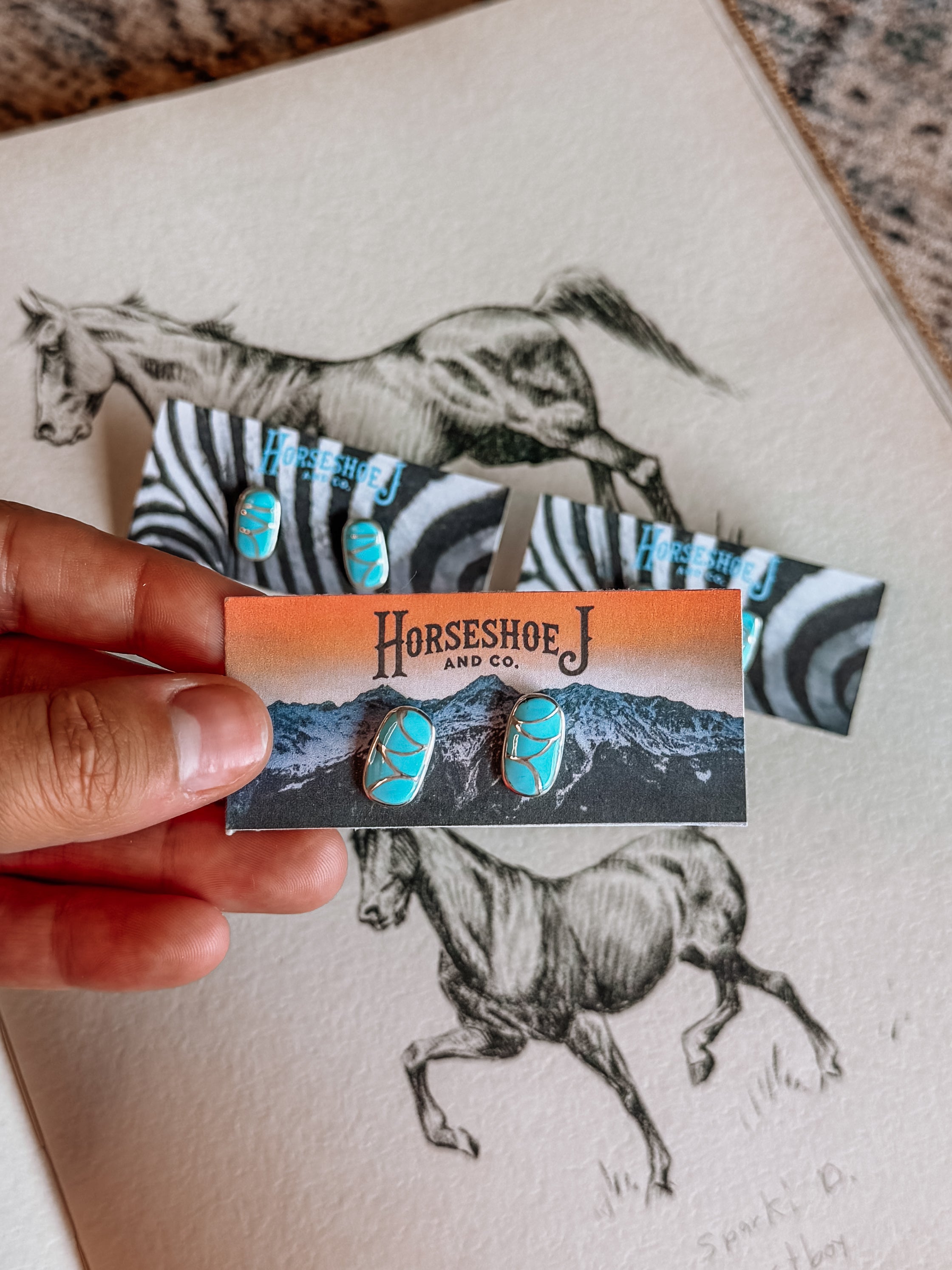 Raisin' Cain Turquoise Inlay Stud Earrings – Horseshoe J & Co.