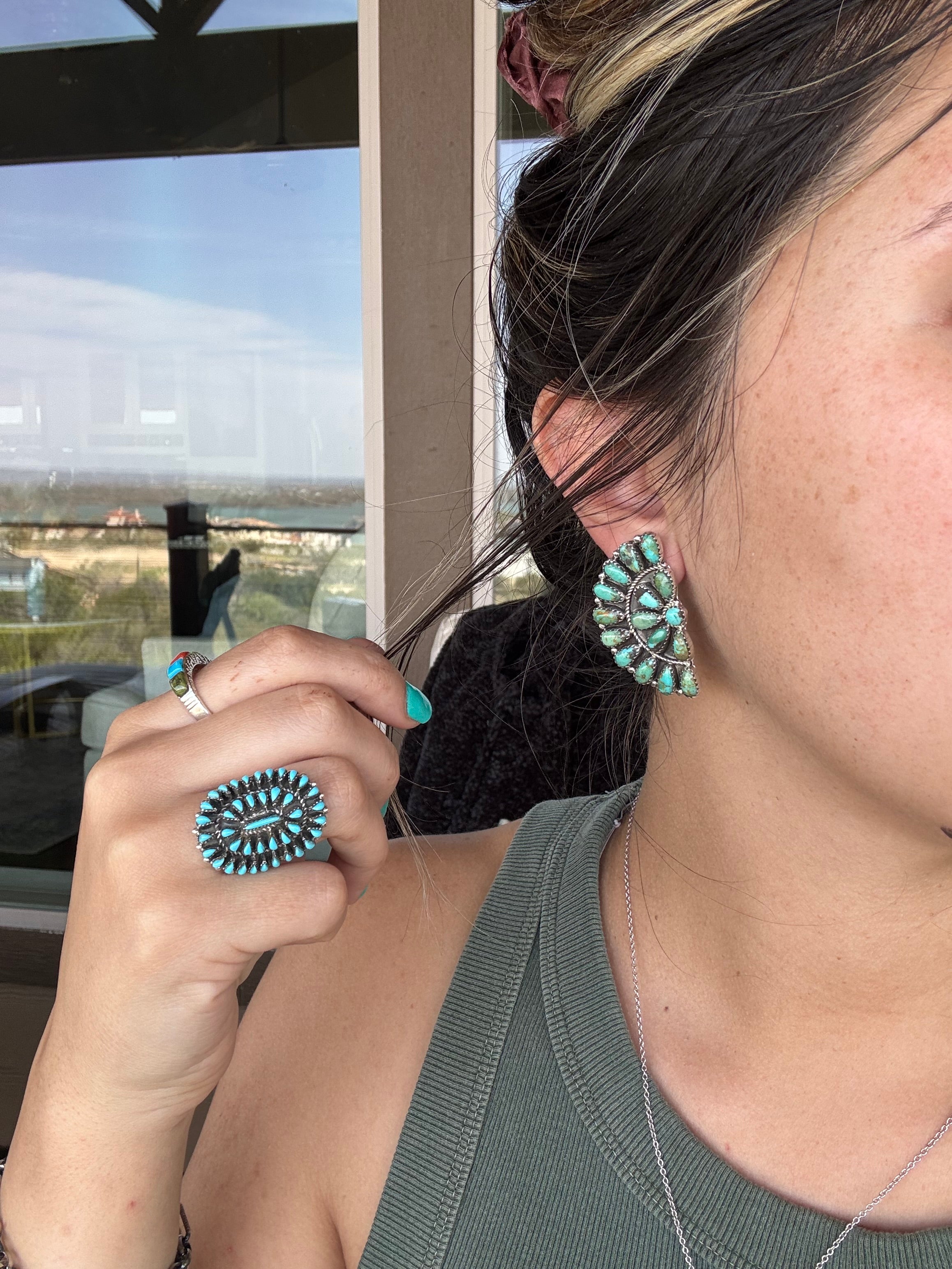 The Pine Half Cluster Turquoise Earrings – Horseshoe J & Co.