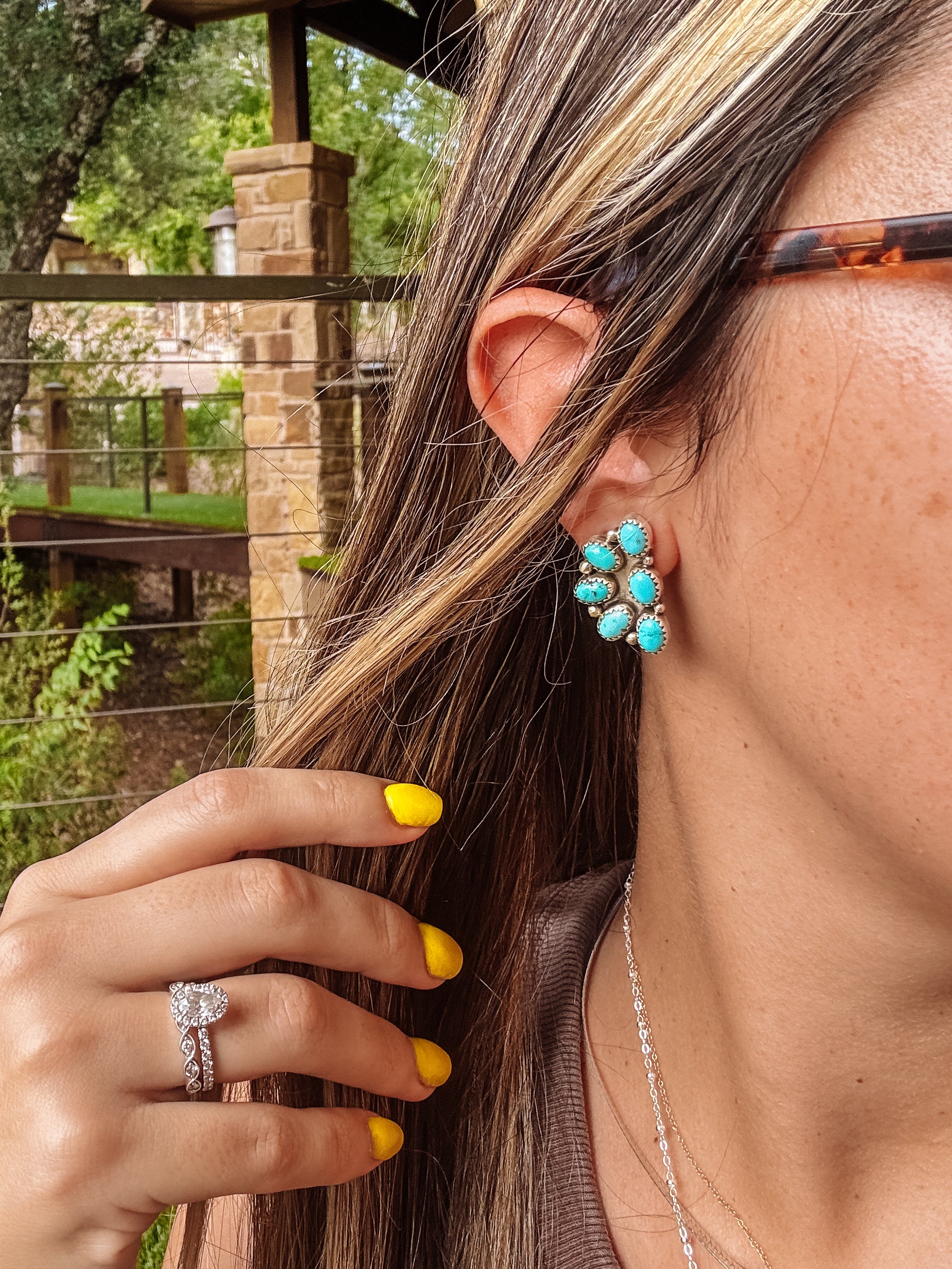 Marfa Cluster Turquoise/Pink Dahlia Earrings