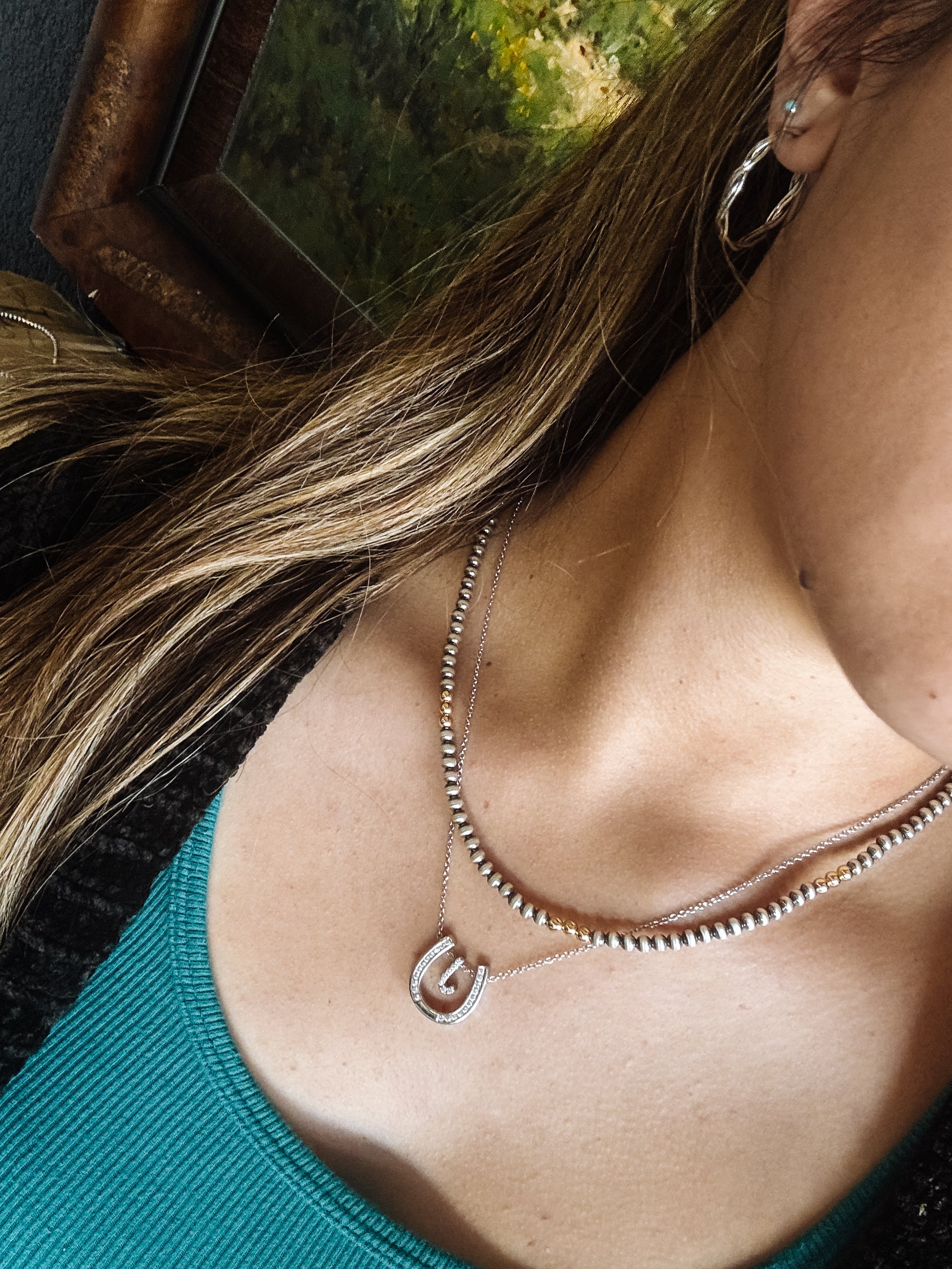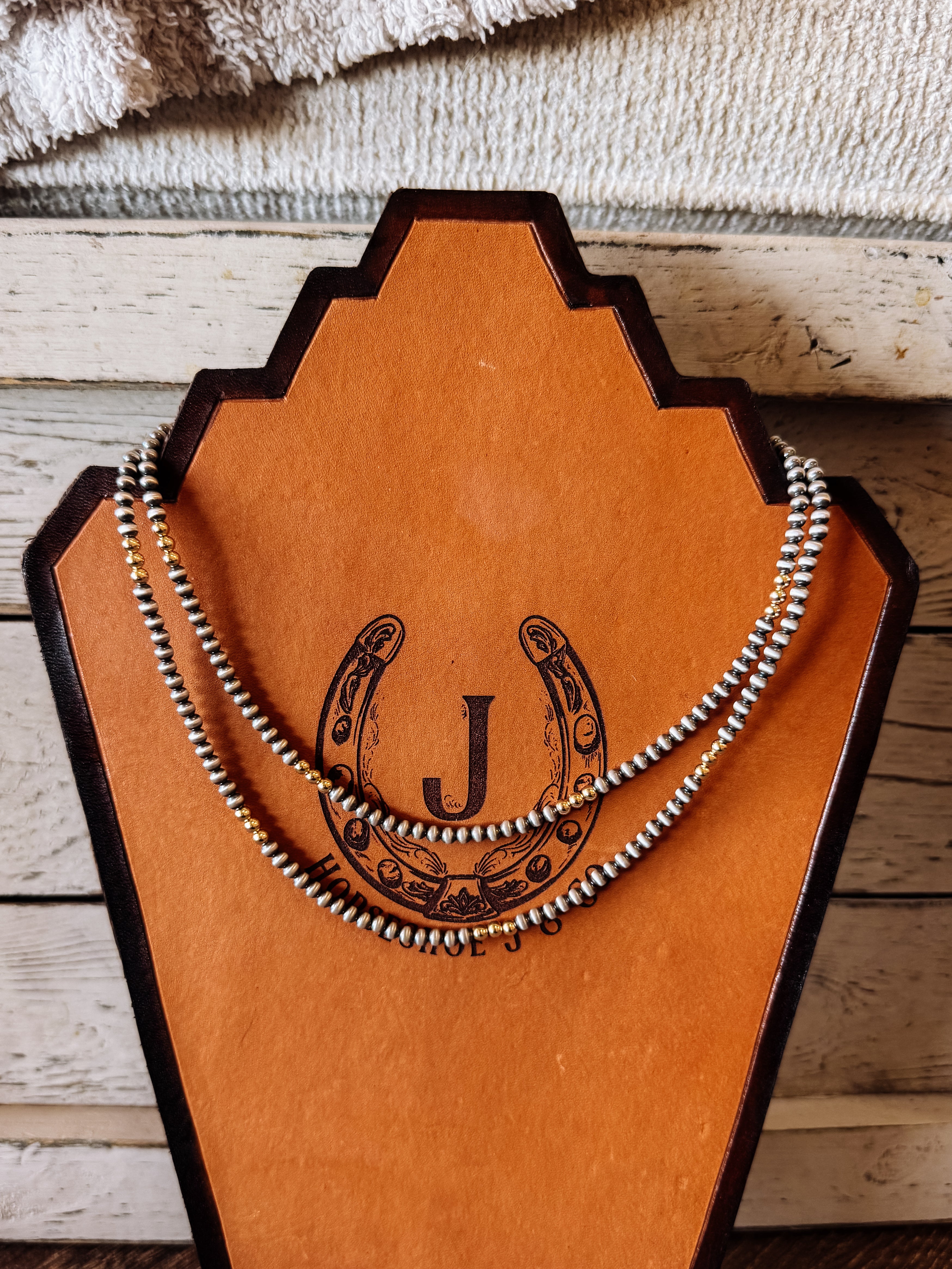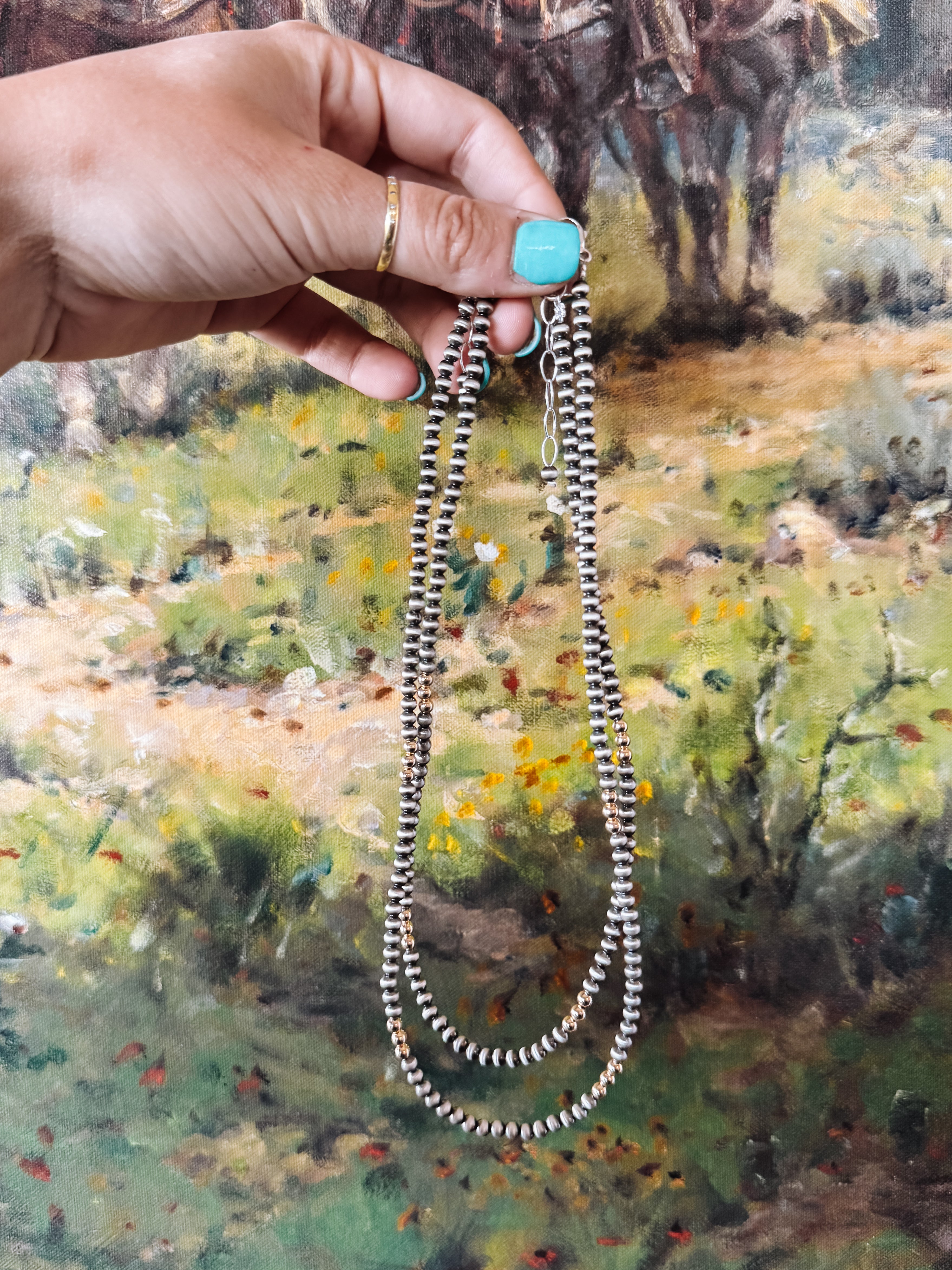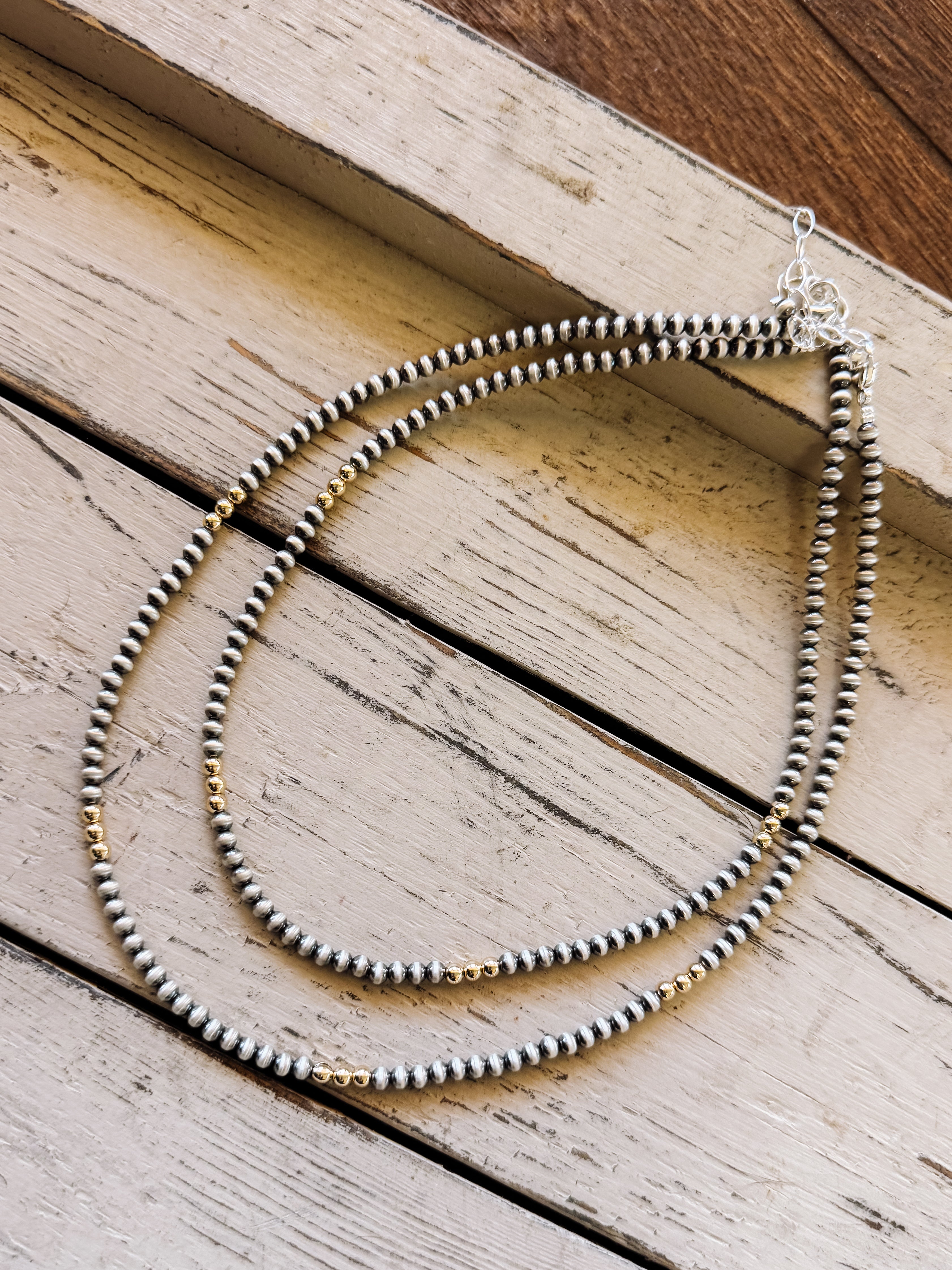 Among The Willows Sterling Silver Pearl + Gold Bead Necklace