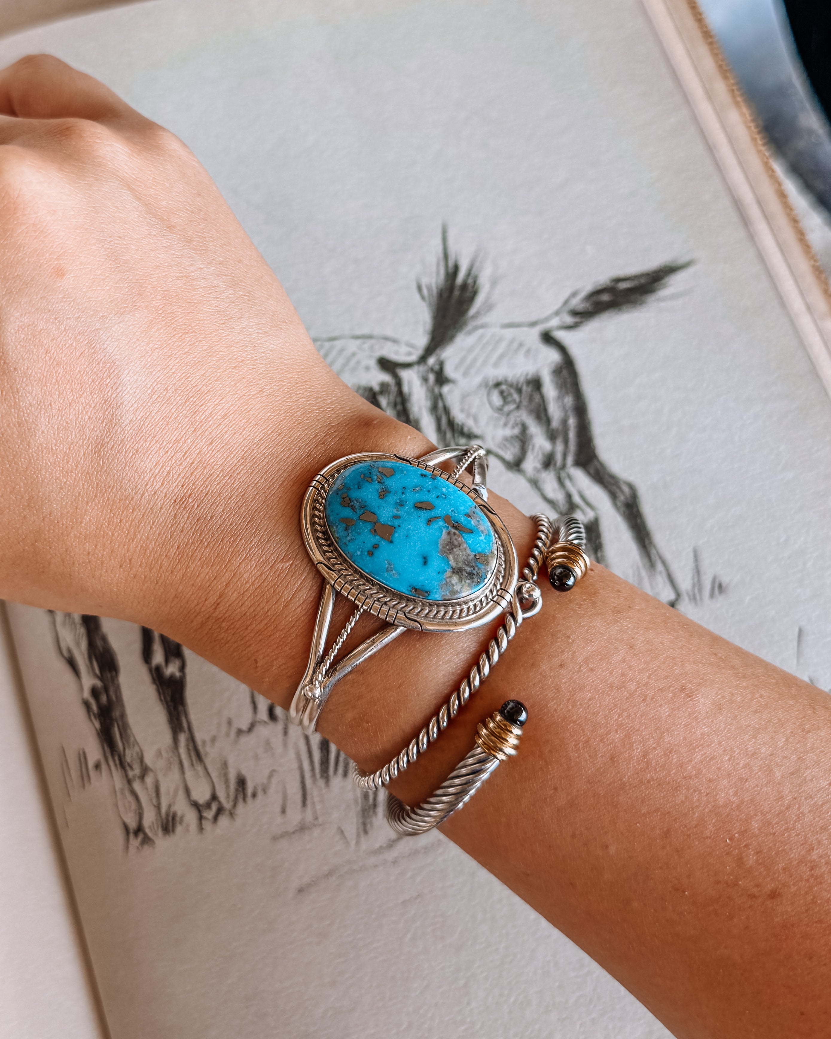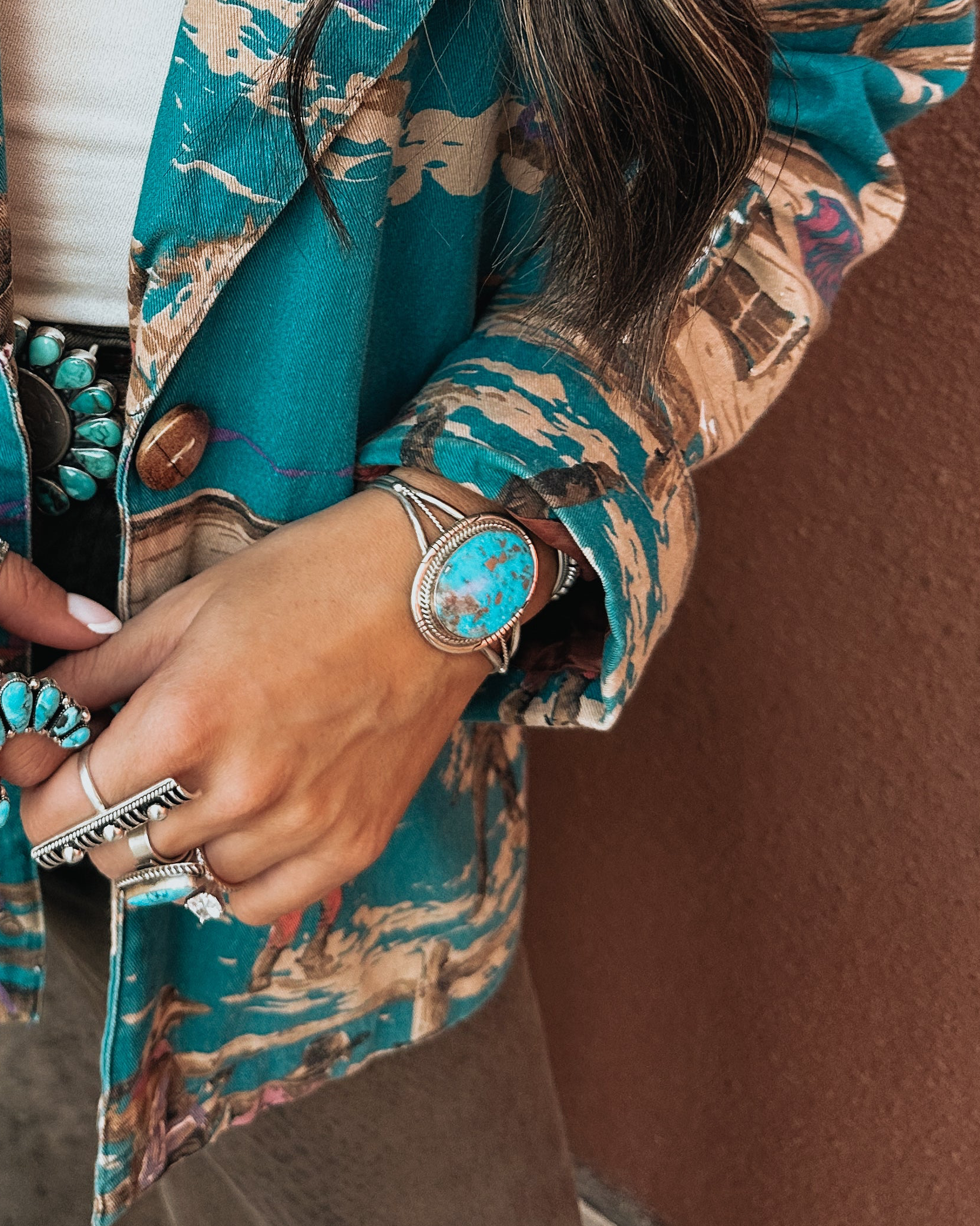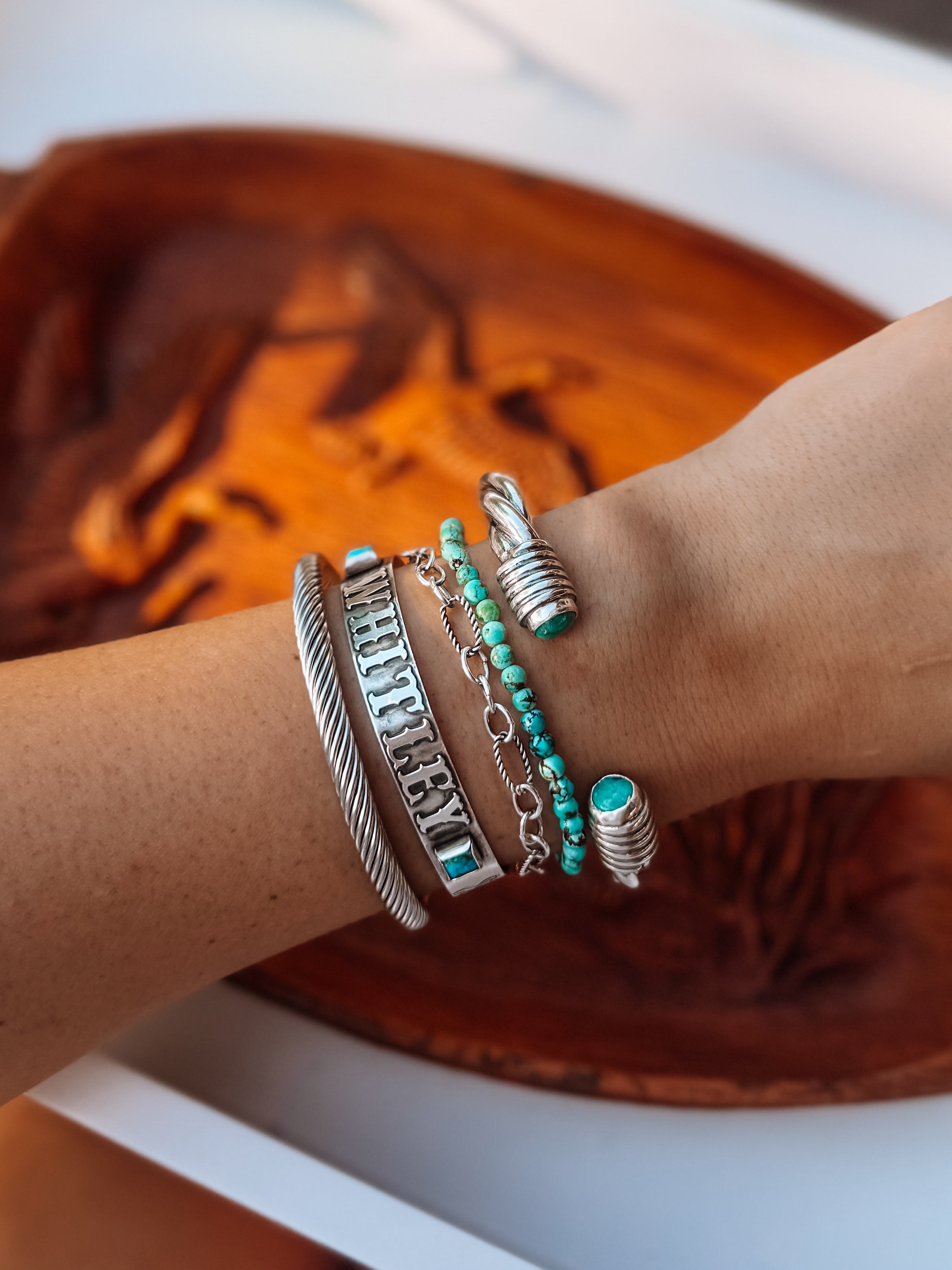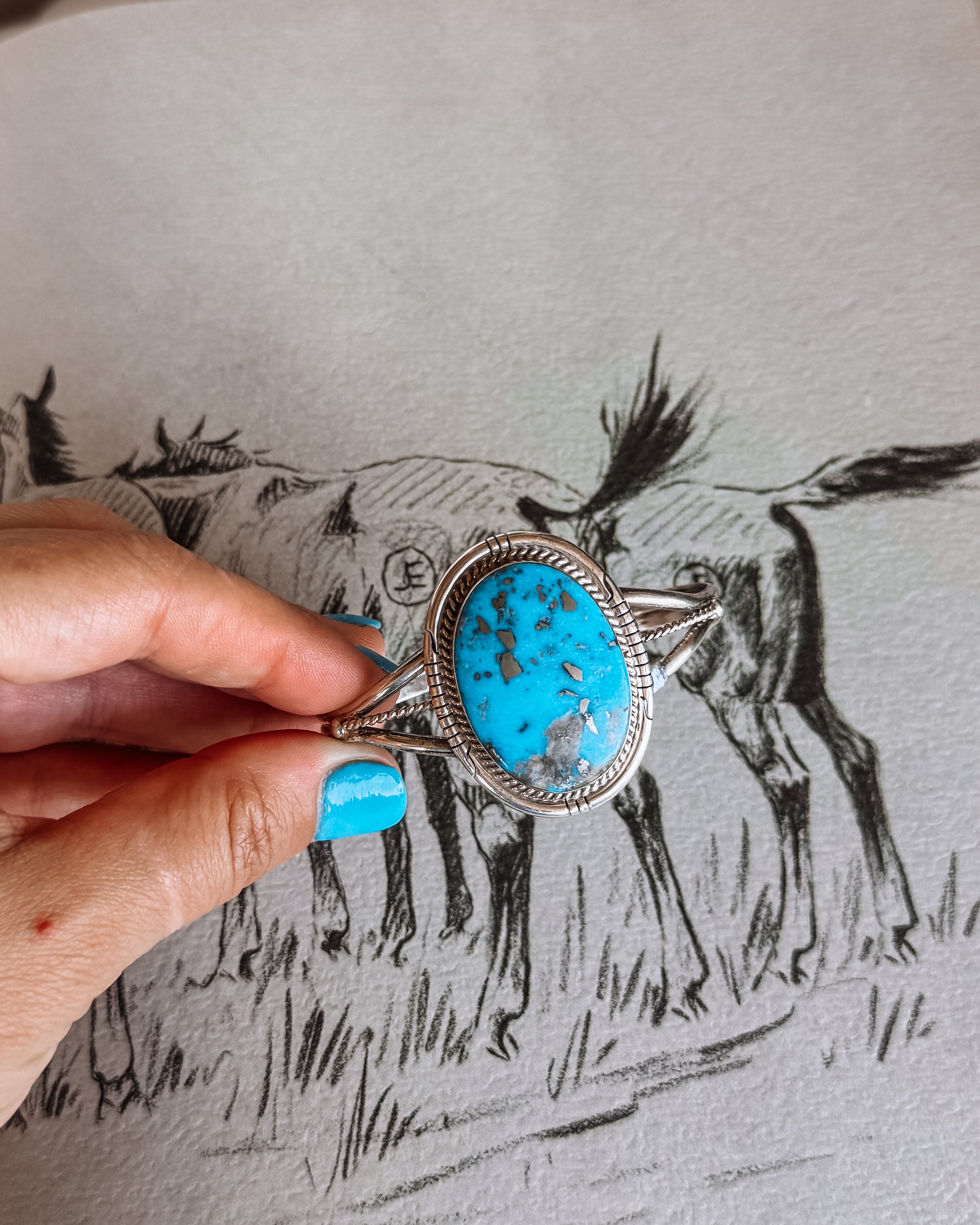 The Harley Chey NFR Collection is a bold, statement-making lineup inspired by the lights, legacy, and energy of the National Finals Rodeo. Featuring standout turquoise pieces crafted in sterling silver, this collection blends classic Western roots with modern rodeo style.