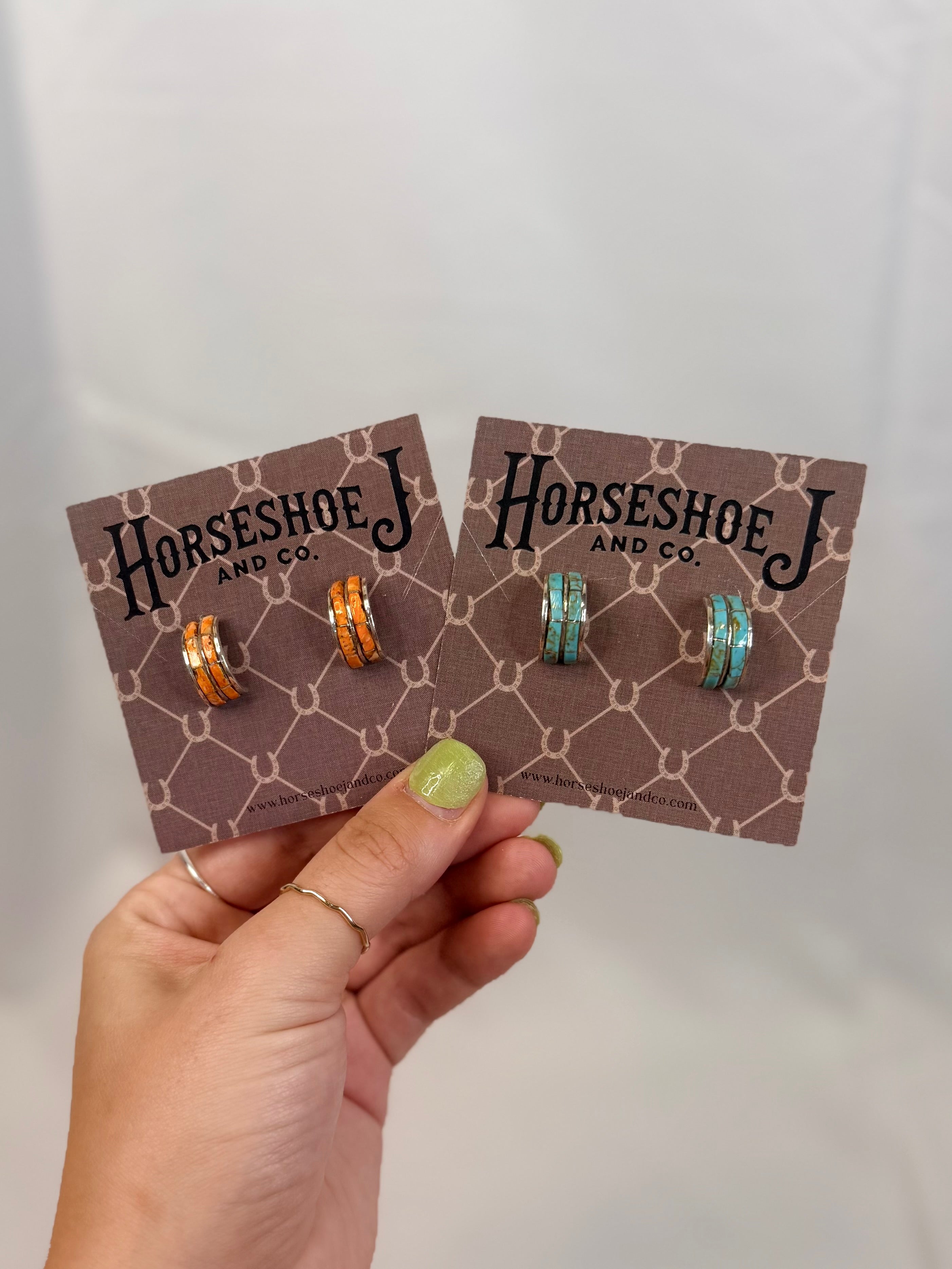 Gruetli Turquoise + Orange Spiny Hoop Earrings