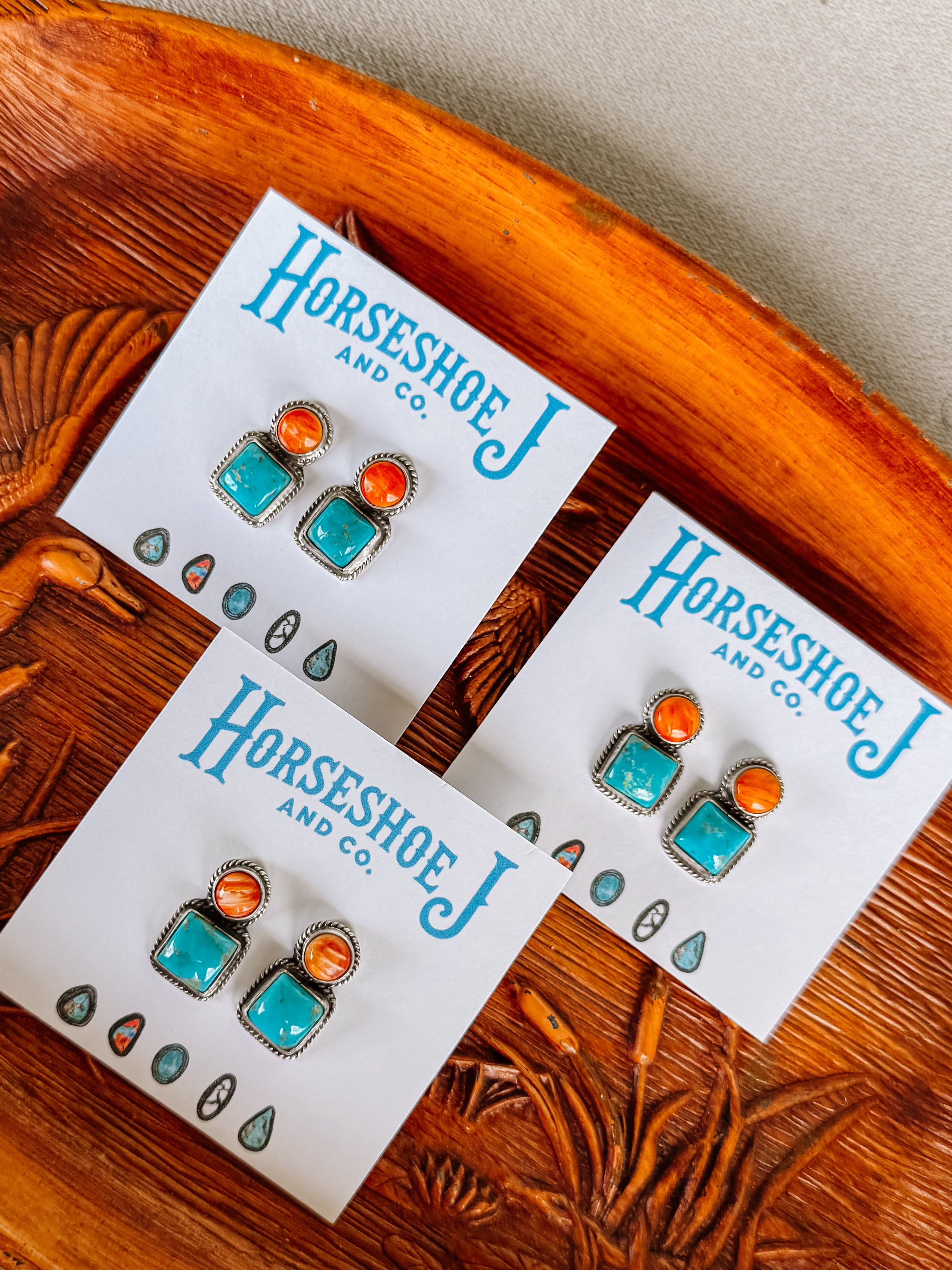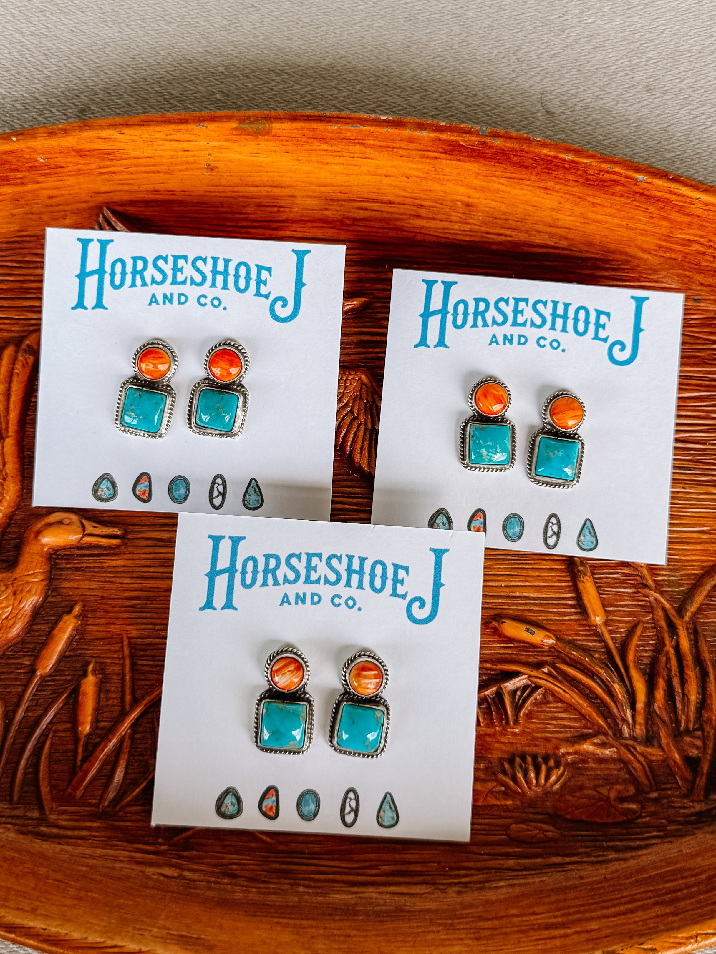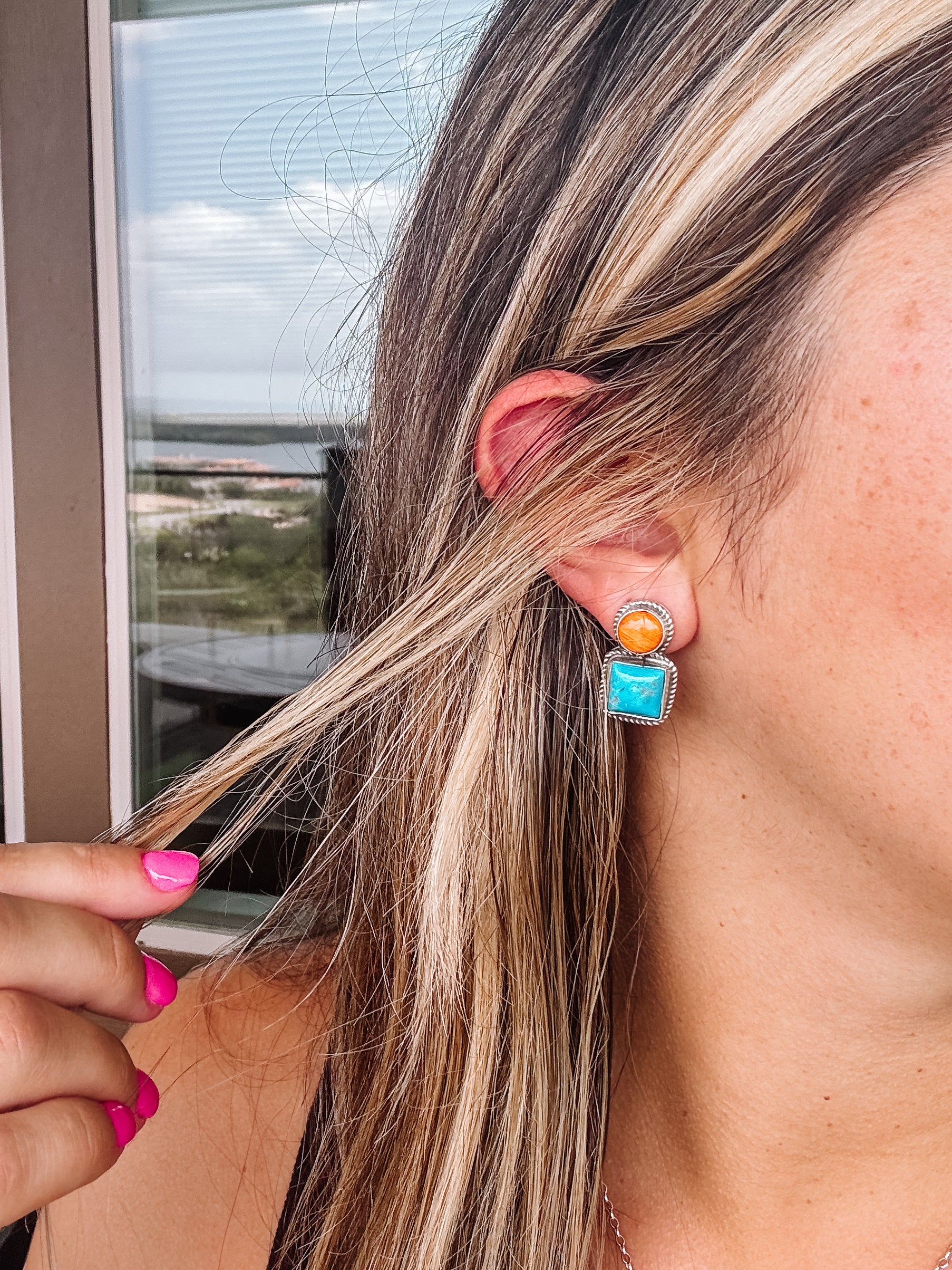 Seadrift Orange Spiny + Turquoise Earrings