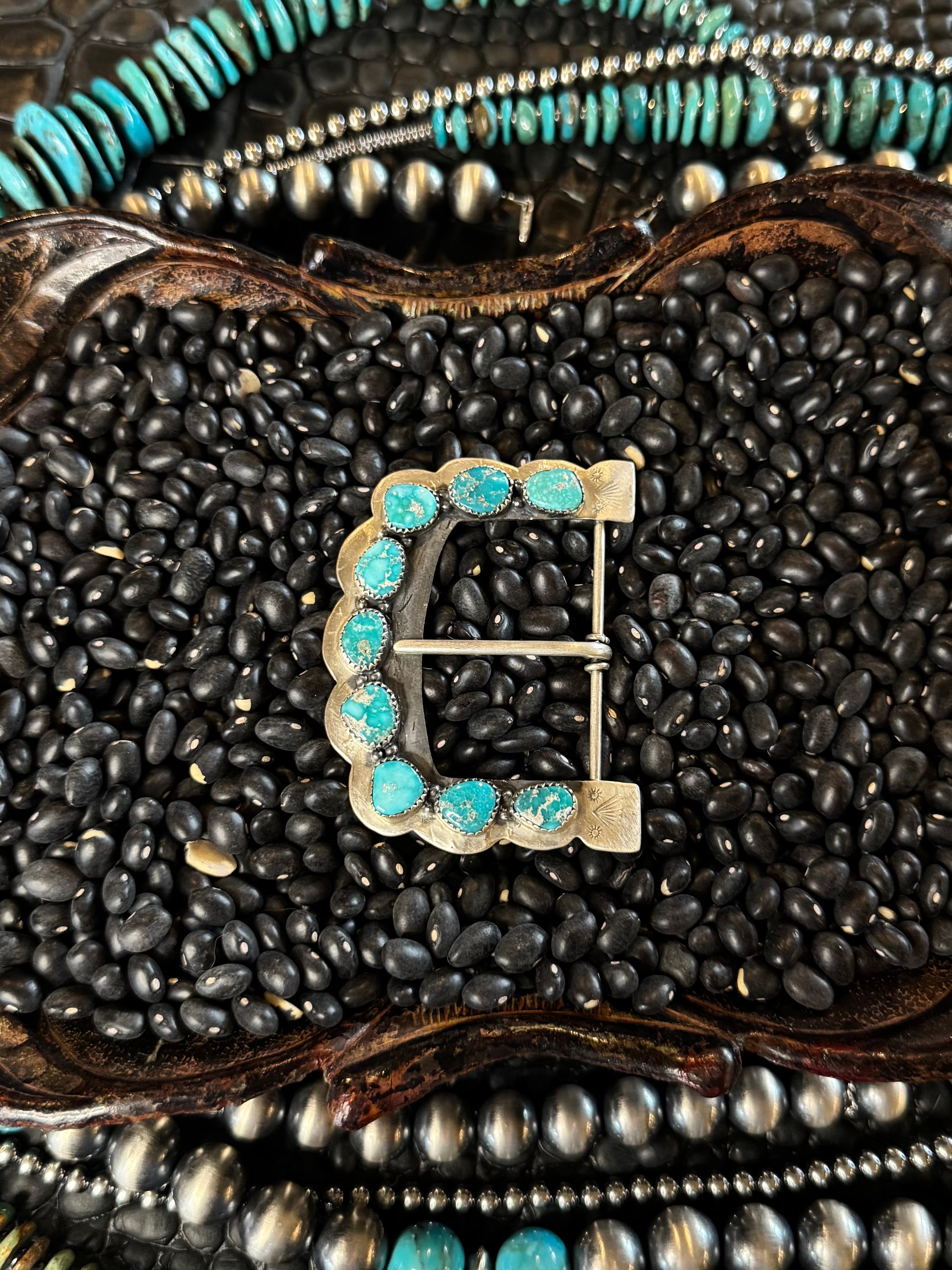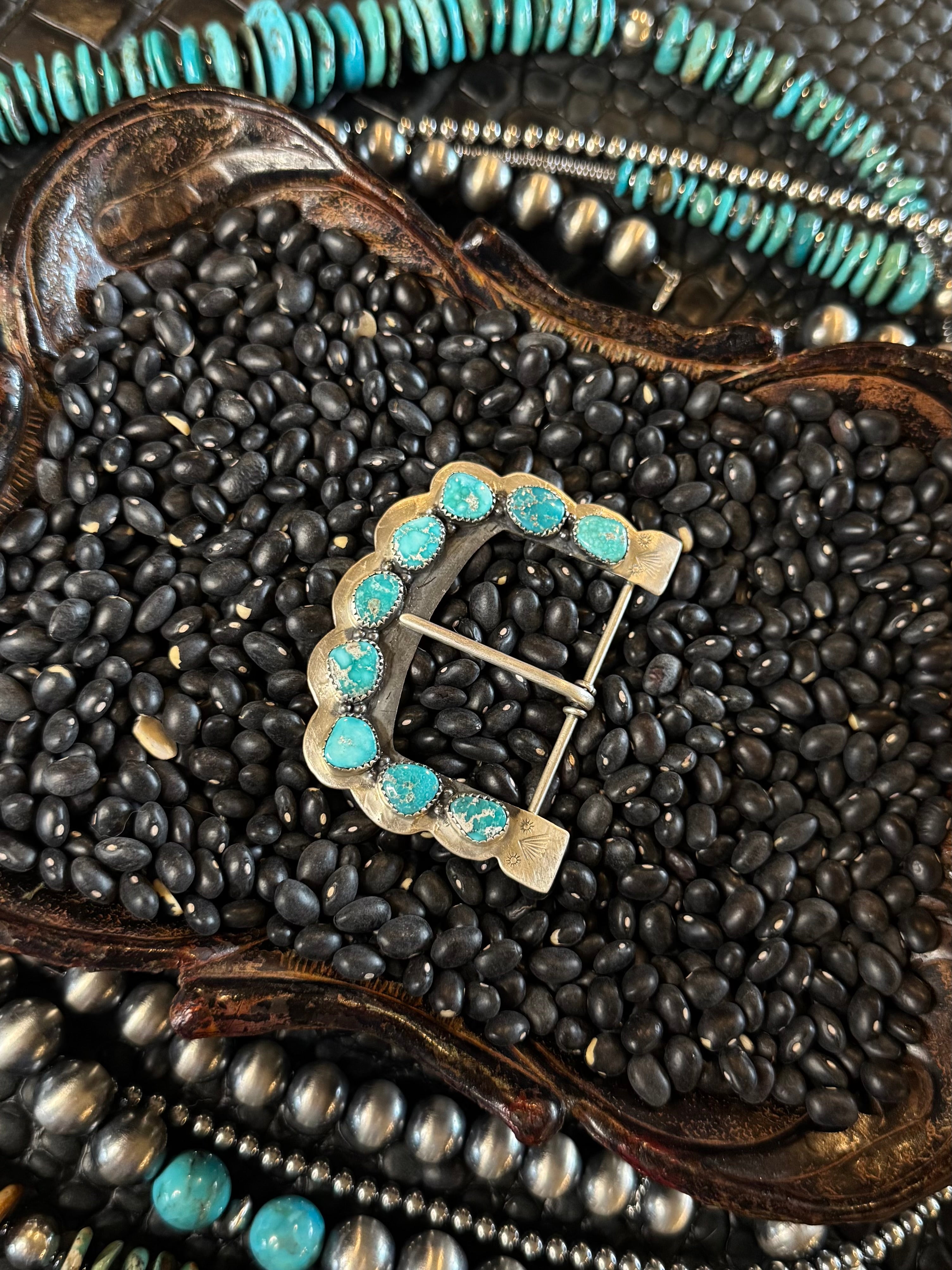 Horn Iron Turquoise Belt Buckle