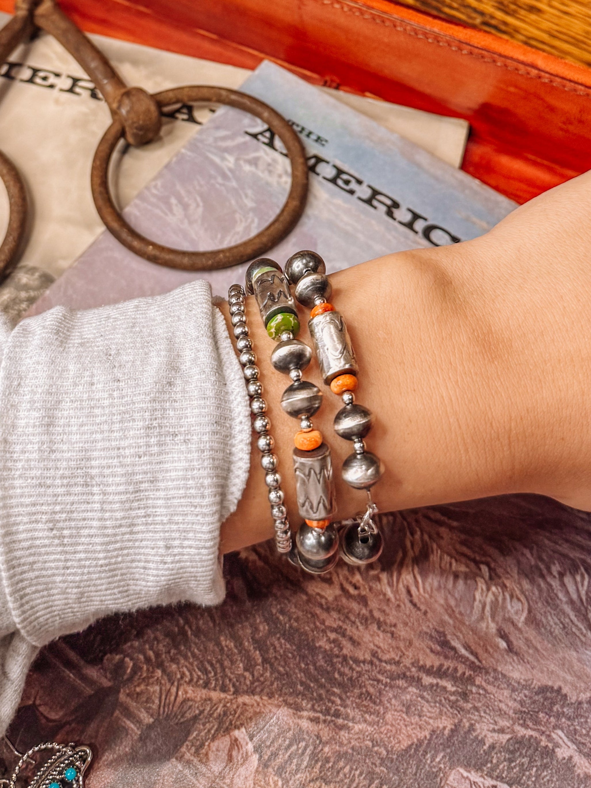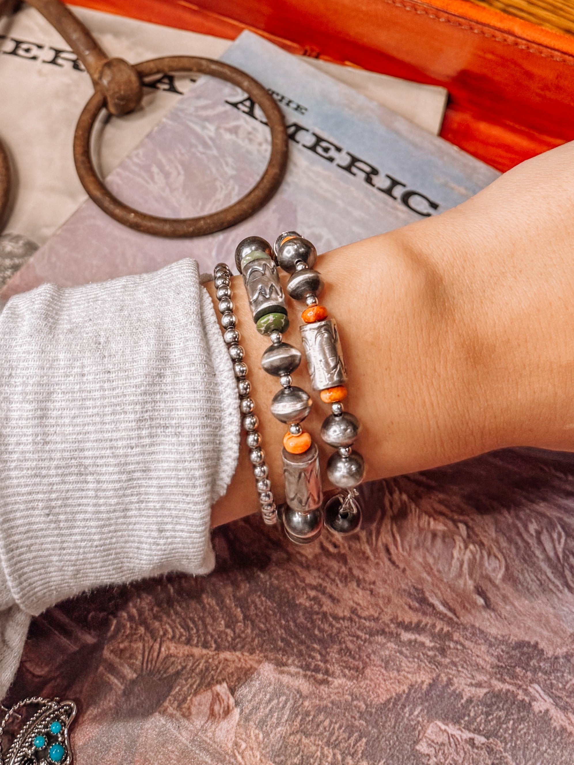 Stinnett Navajo Pearl & Stone Bracelets + Earrings Set