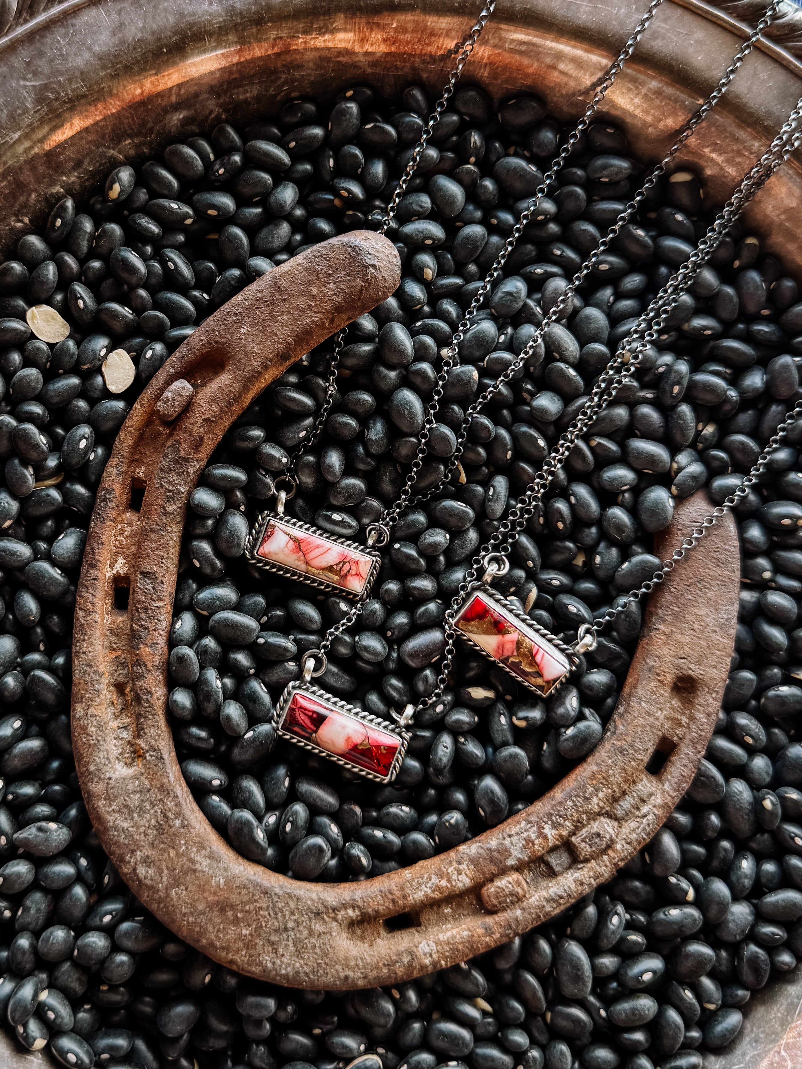 Naco 2 Stone Hook Pendant (Orange/Red Spiny + Turquoise)