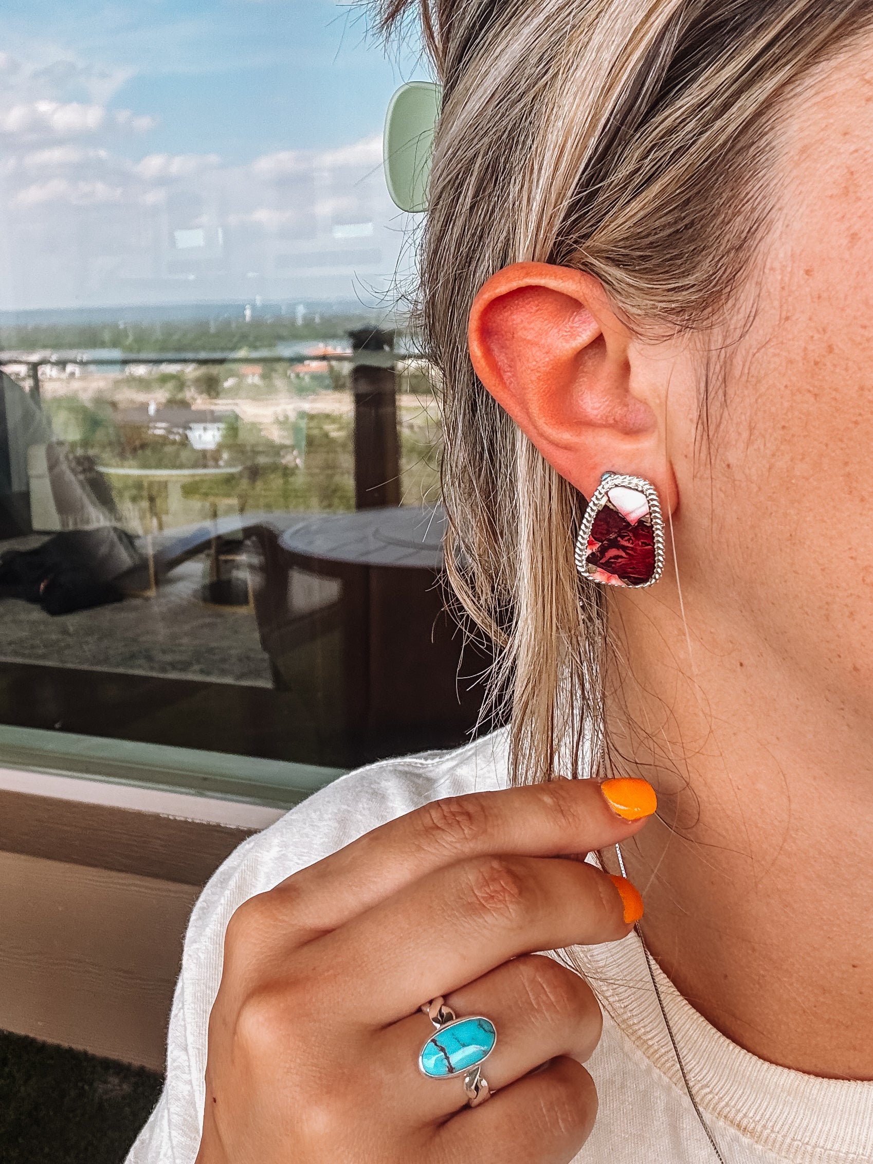 Henry 3 Stone Turquoise/Purple Spiny Oyster Earrings