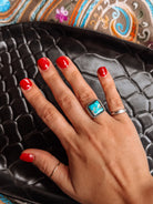 Featuring vibrant turquoise set on a thick silver band, this ring makes a bold statement with timeless western style.