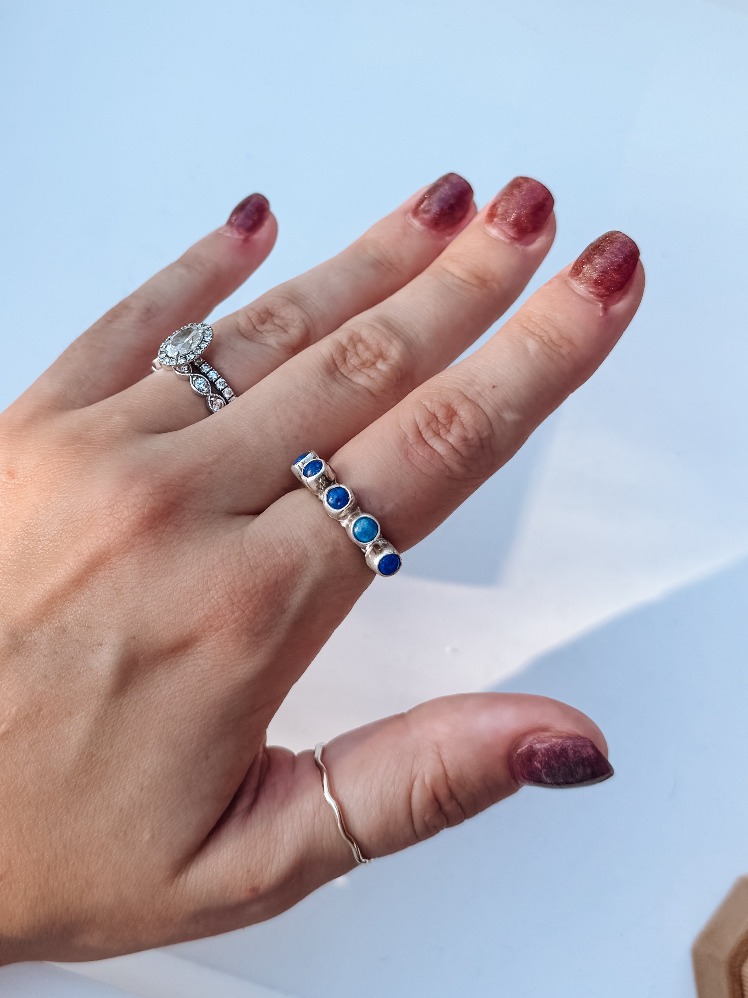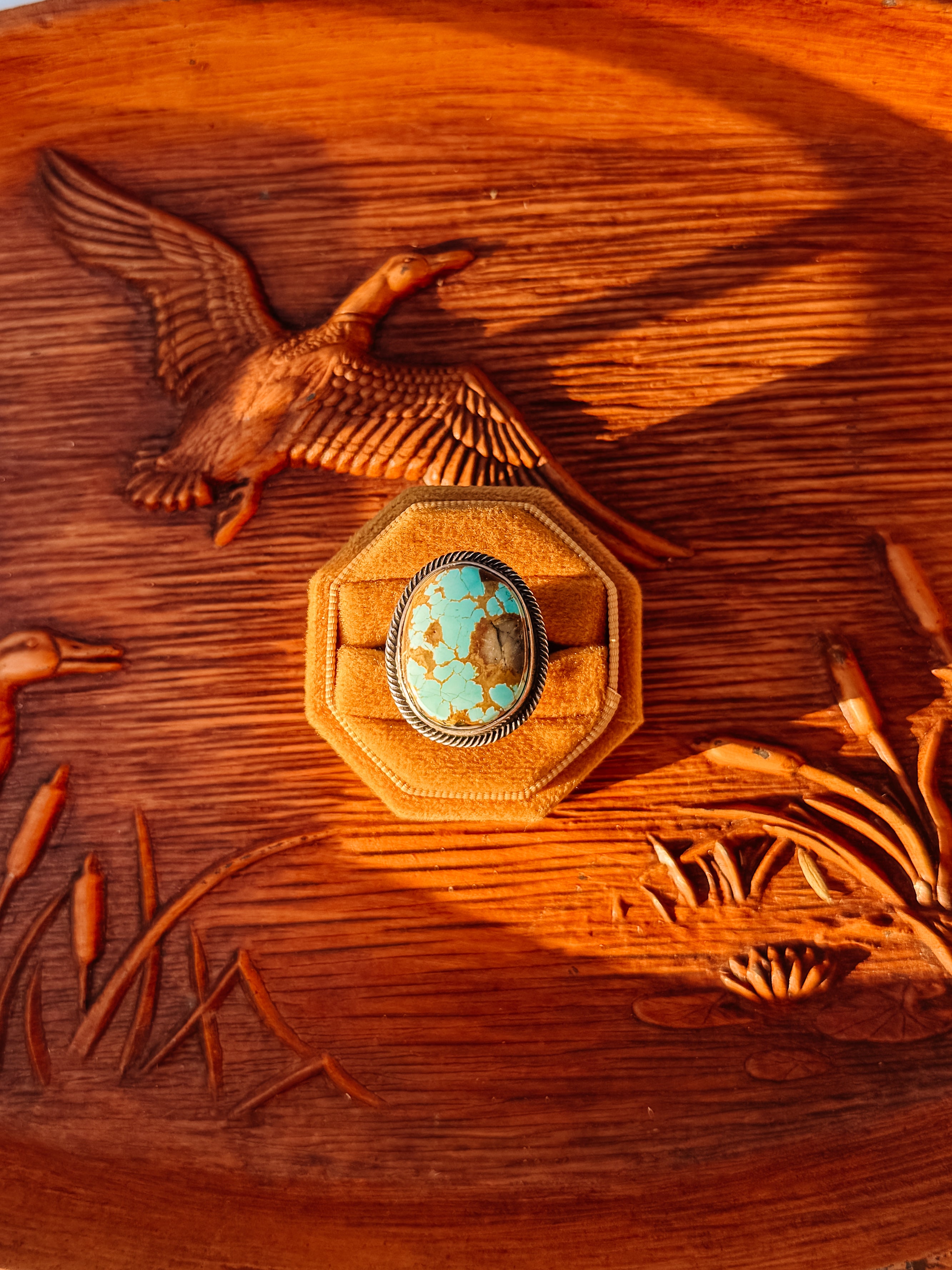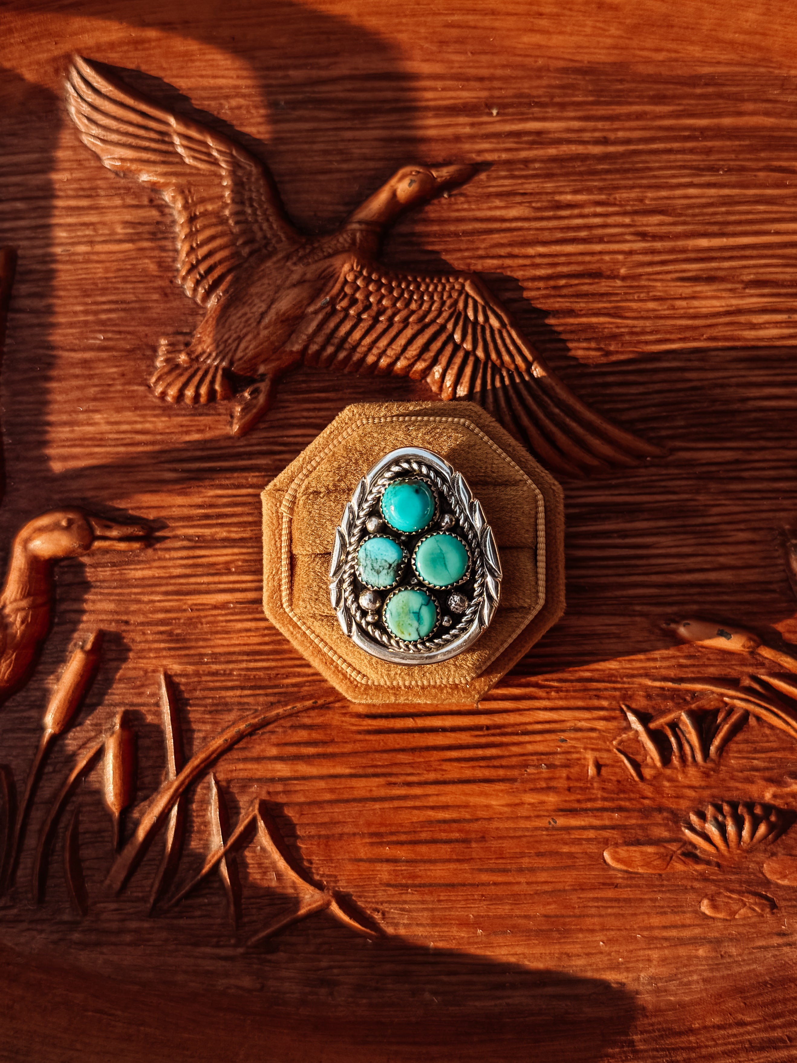 Harley Adjustable Turquoise + White Buffalo Cluster Ring