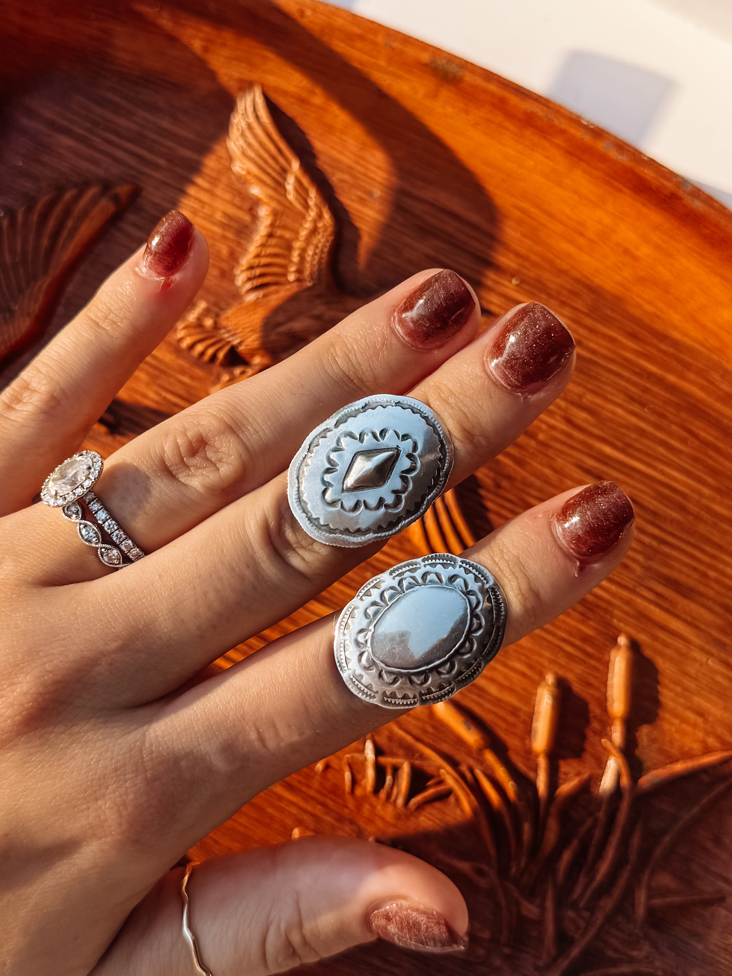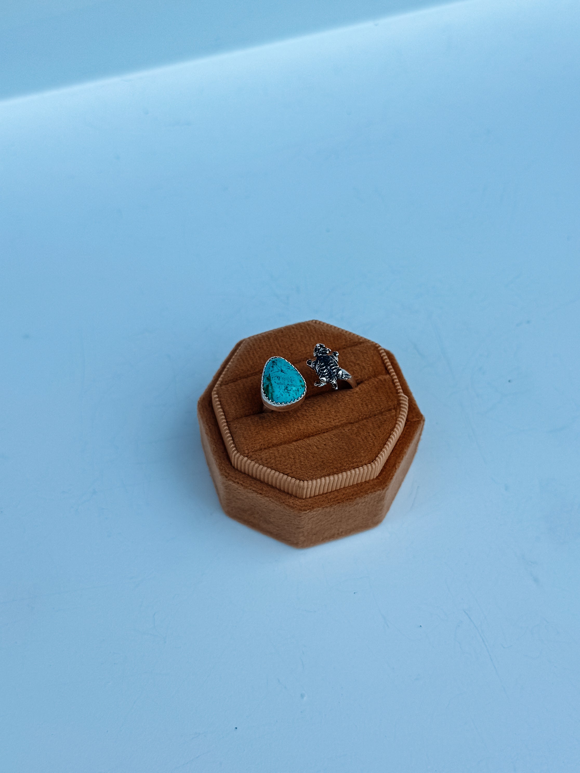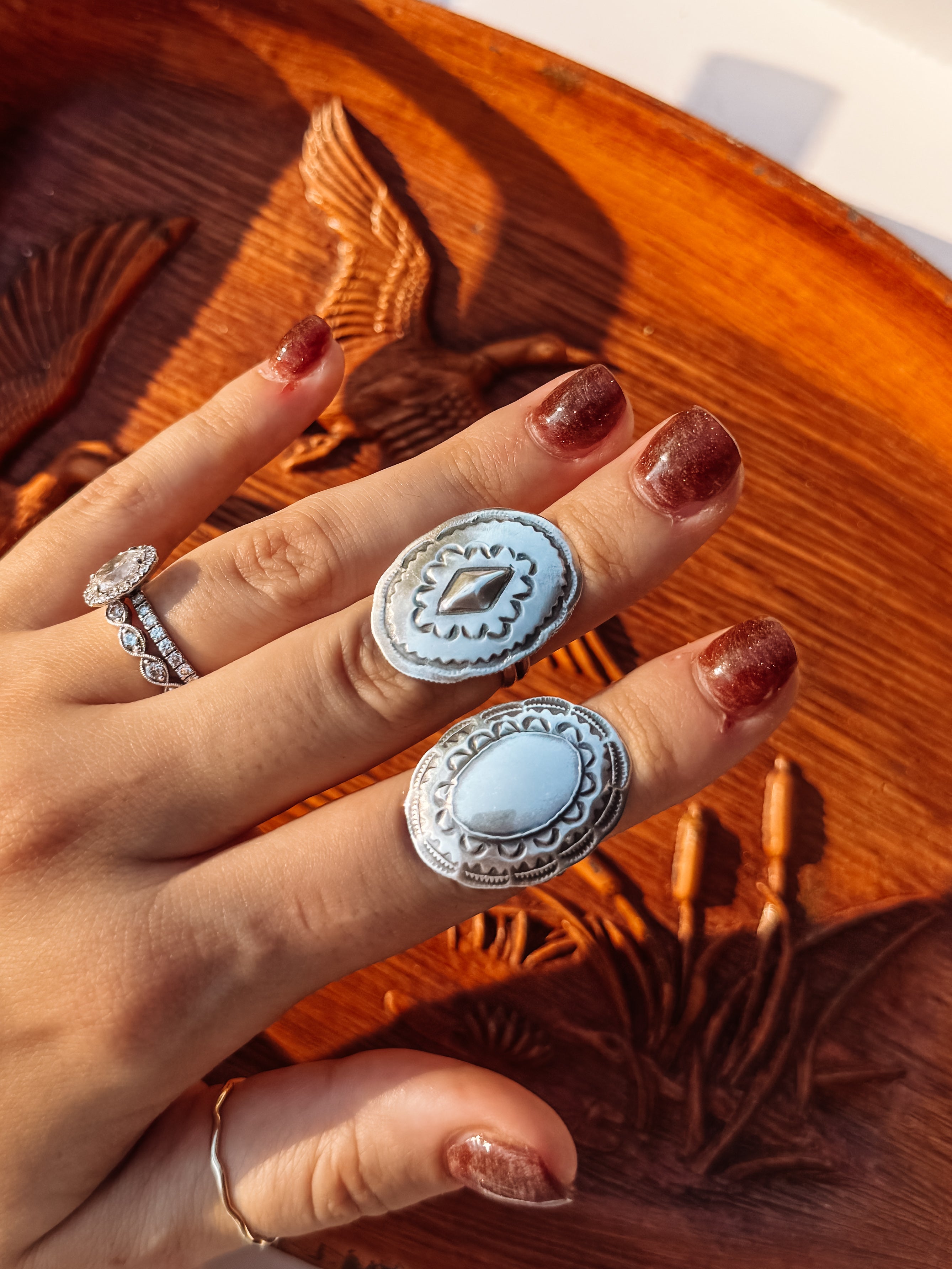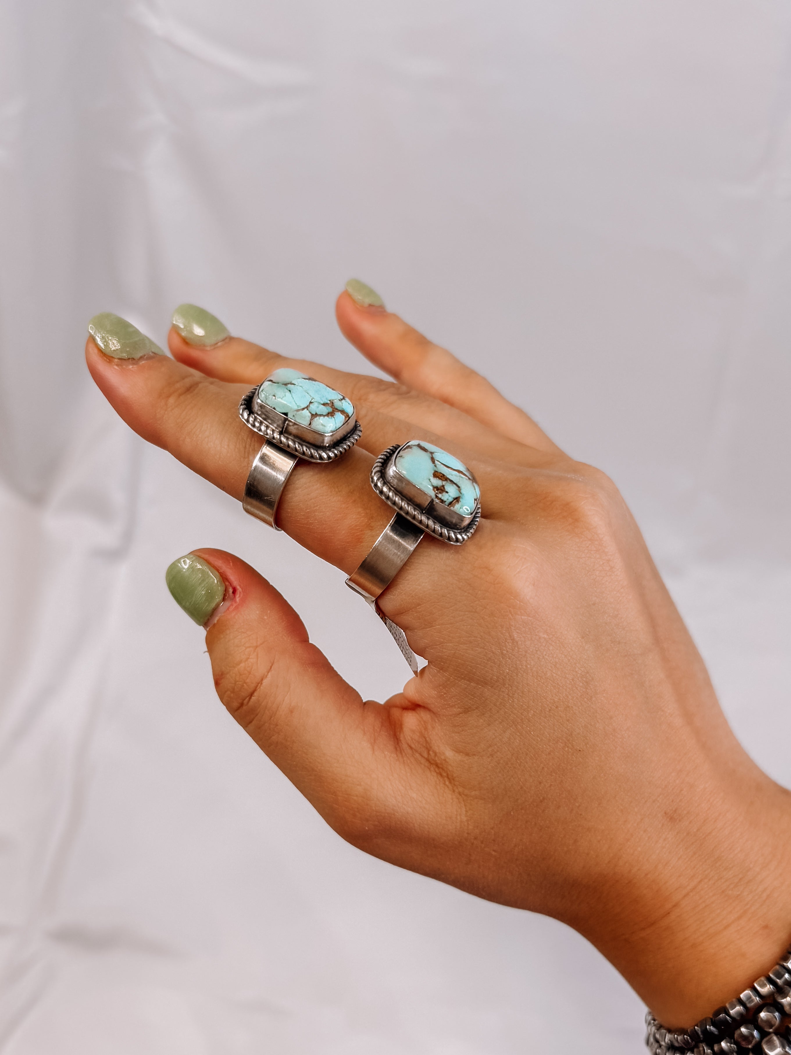 Eureka White Buffalo + Turquoise Adjustable Rings