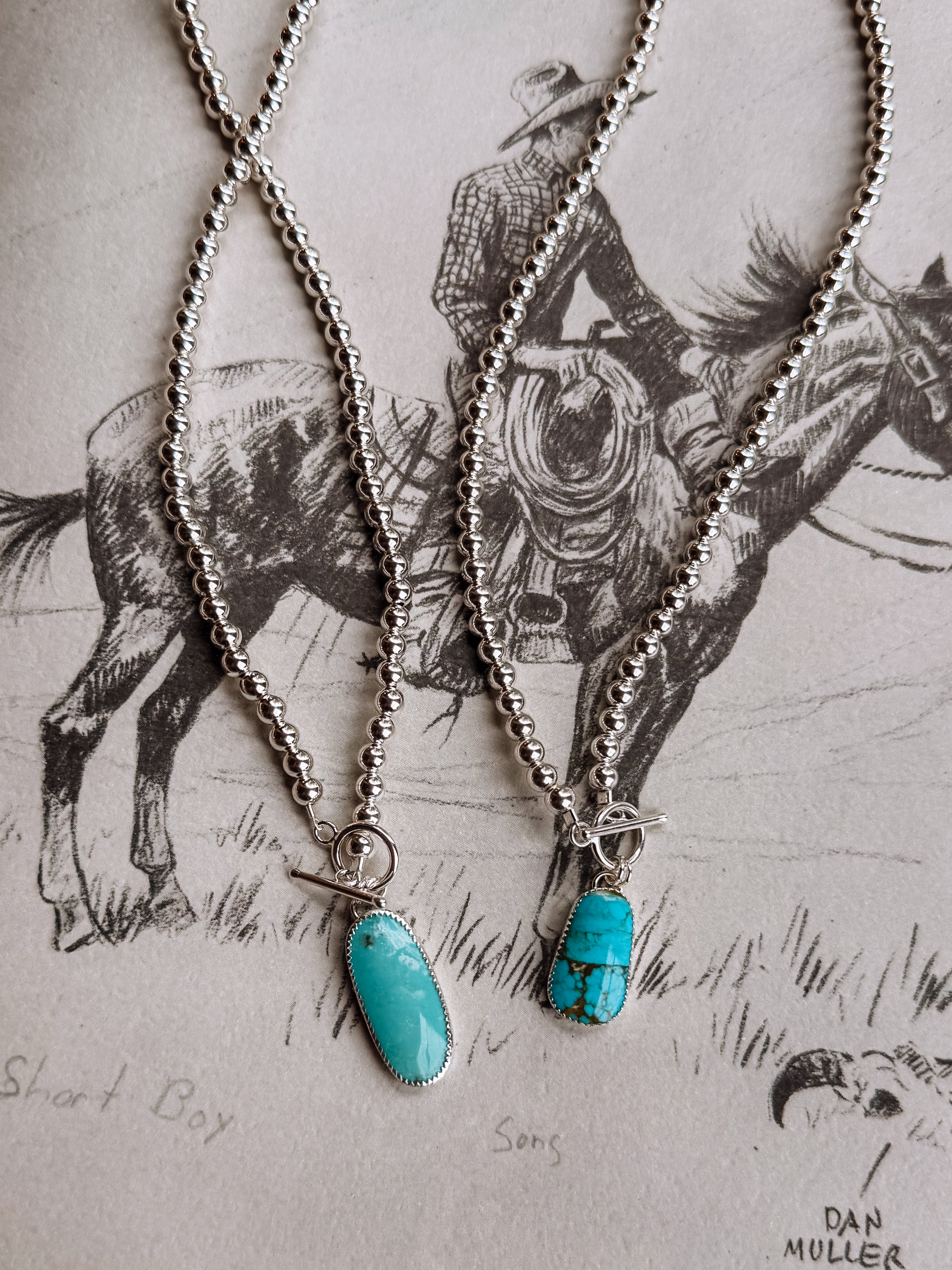 14mm 18" Sterling Silver Pearl with Turquoise Necklace