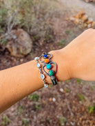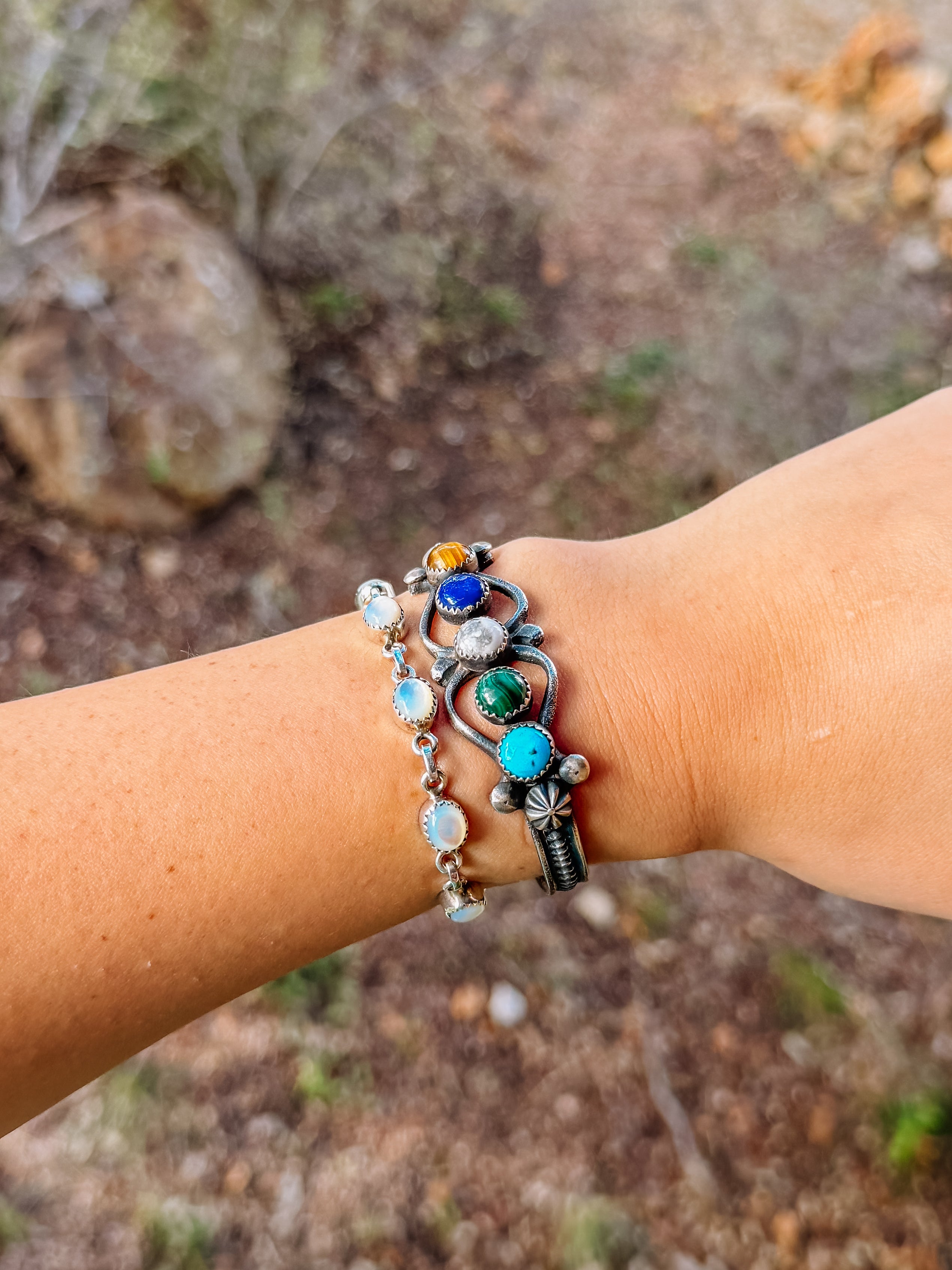 Stone: Turquoise, green malachite, orange spiny oyster, white buffalo, blue lapis