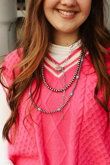 3 inch silver latch and chain adding 3 inch to the 28 inch