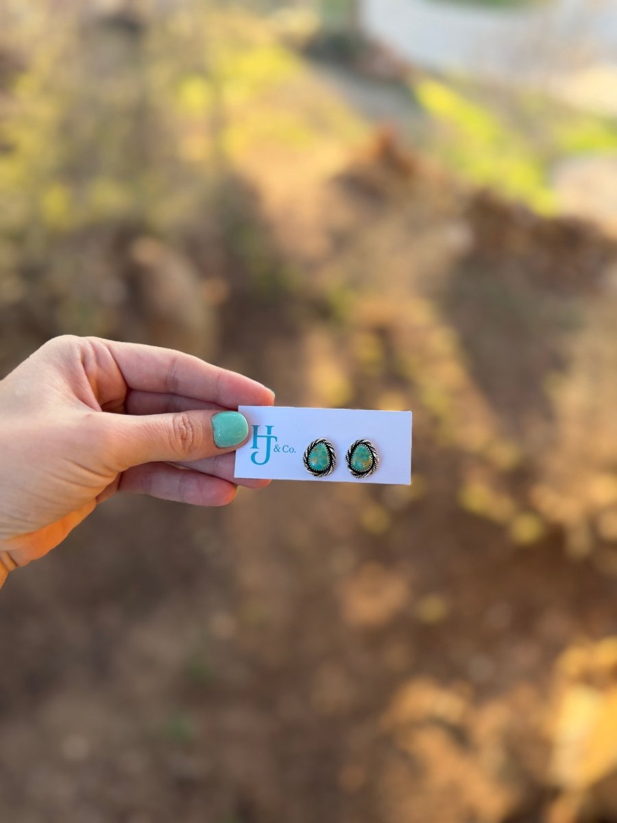 Sterling silver and turquoise stud earrings featuring genuine turquoise stones in a classic, timeless setting. Lightweight and versatile, they’re perfect for everyday wear or effortless layering.